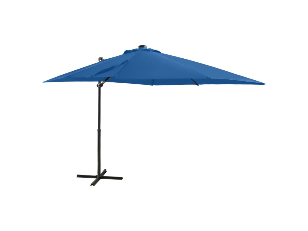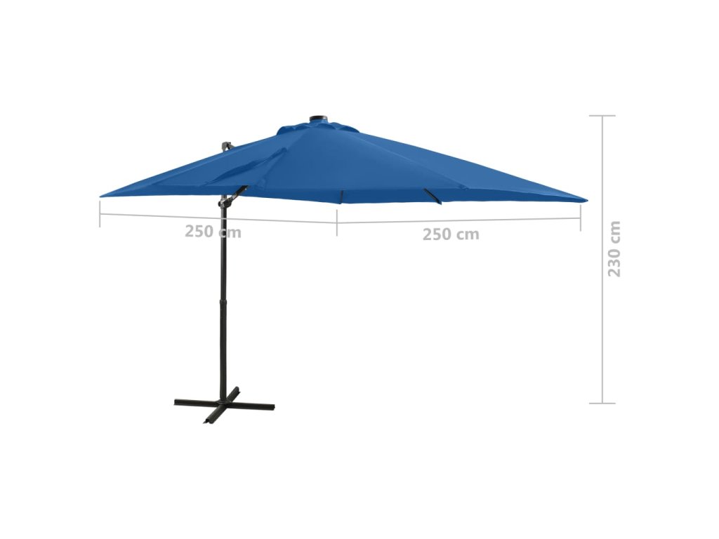 Marketos Boční zahradní slunečník s tyčí a LED azurově modrý 250 cm