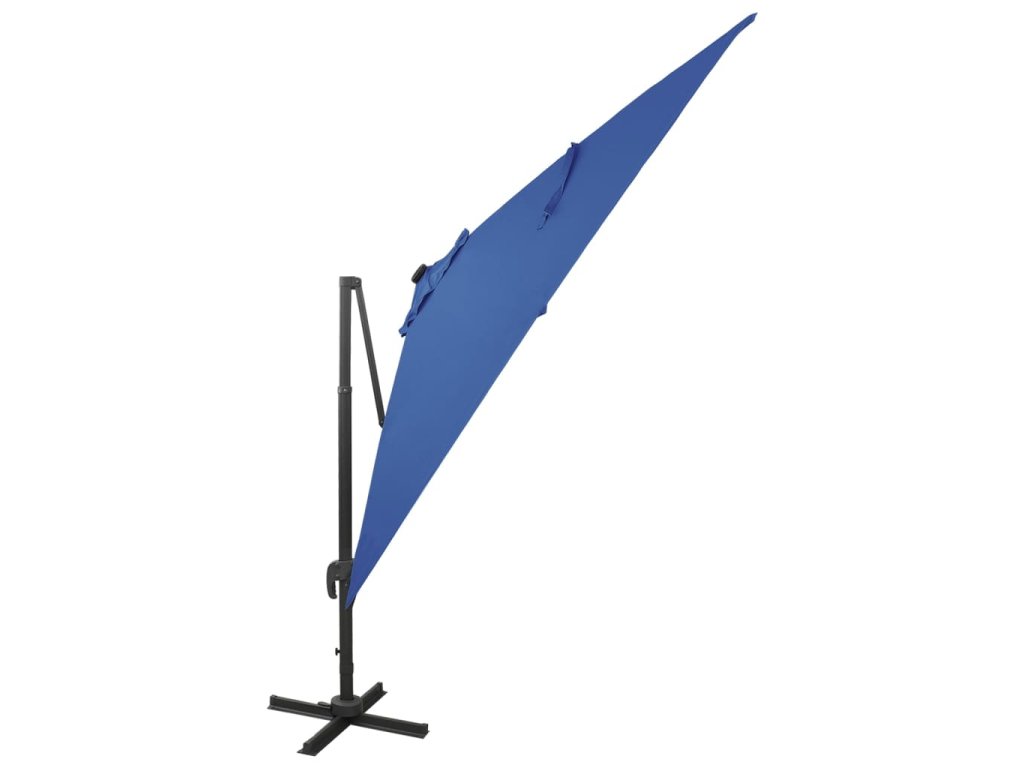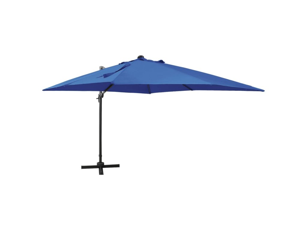 Marketos Boční zahradní slunečník s tyčí a LED azurově modrý 300 cm