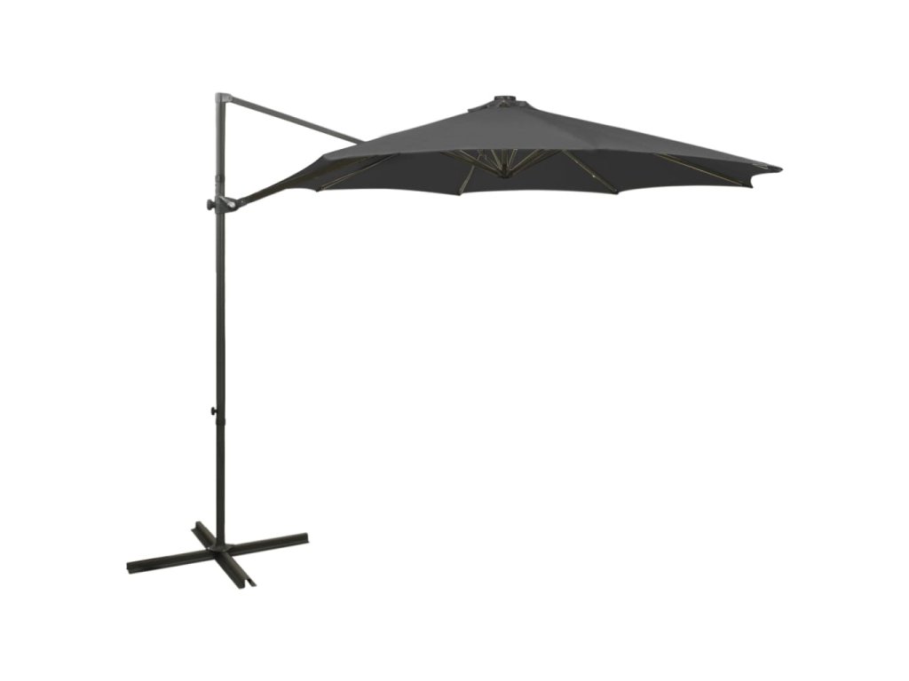Marketos Boční zahradní slunečník s tyčí a LED světly antracitový 300 cm