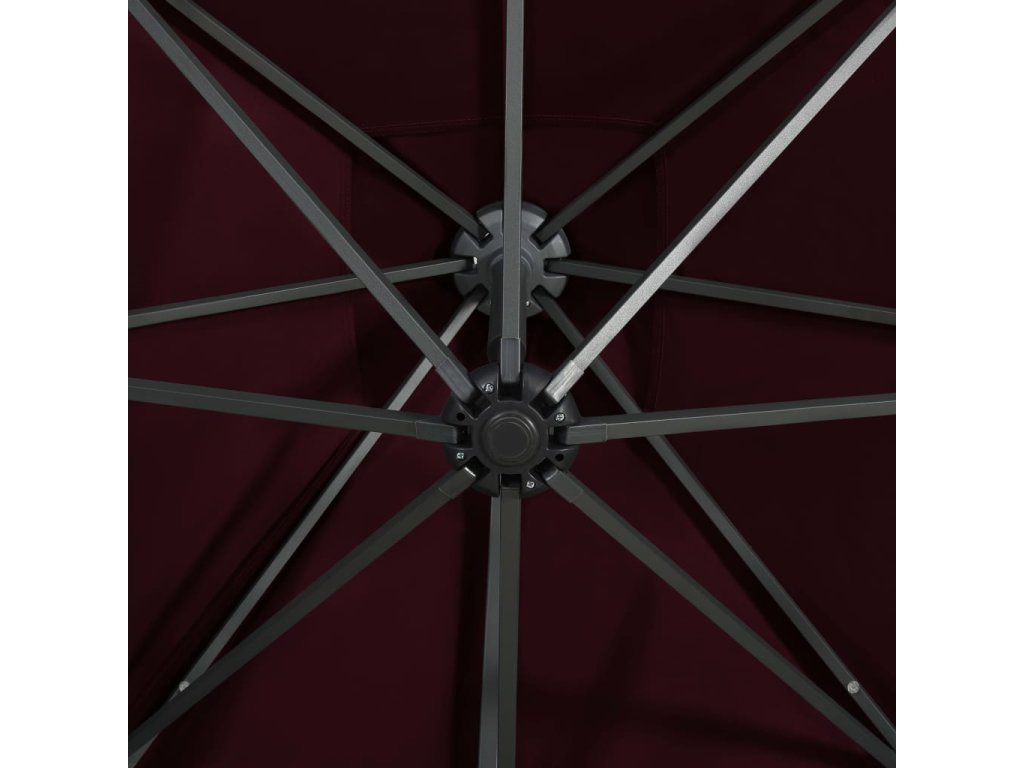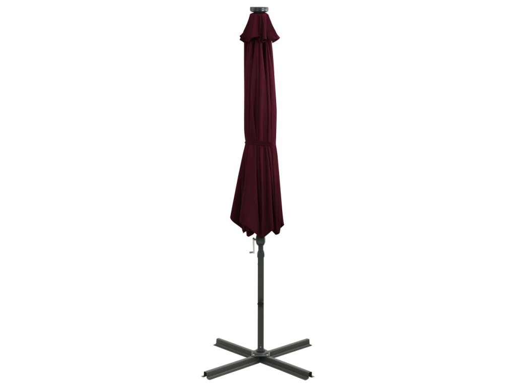 Marketos Boční zahradní slunečník s tyčí a LED světly bordó 300 cm