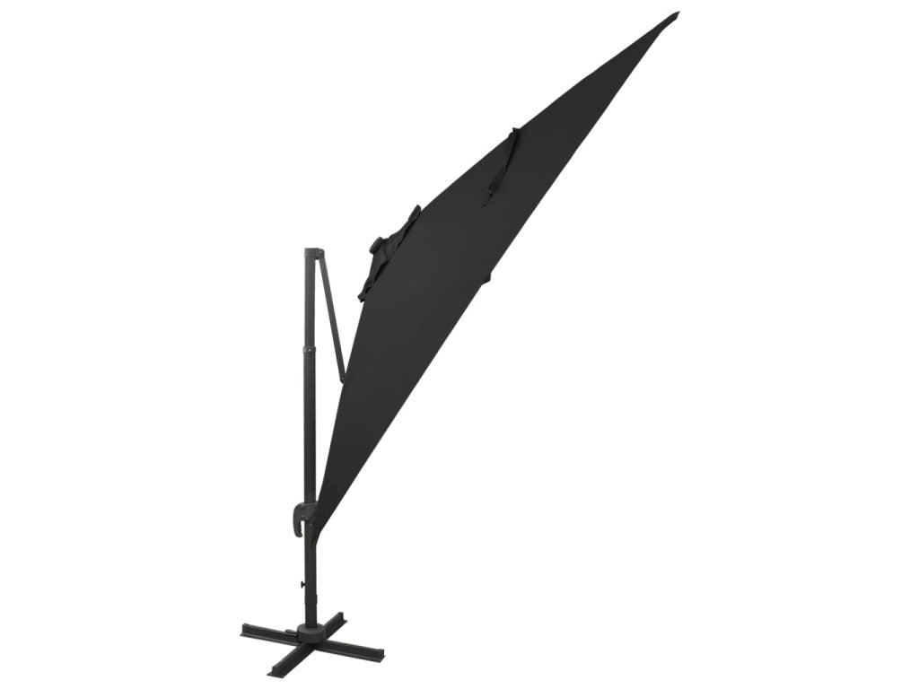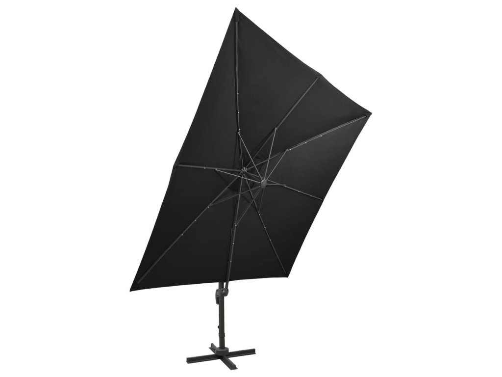 Marketos Boční zahradní slunečník s tyčí a LED světly černý 300 cm