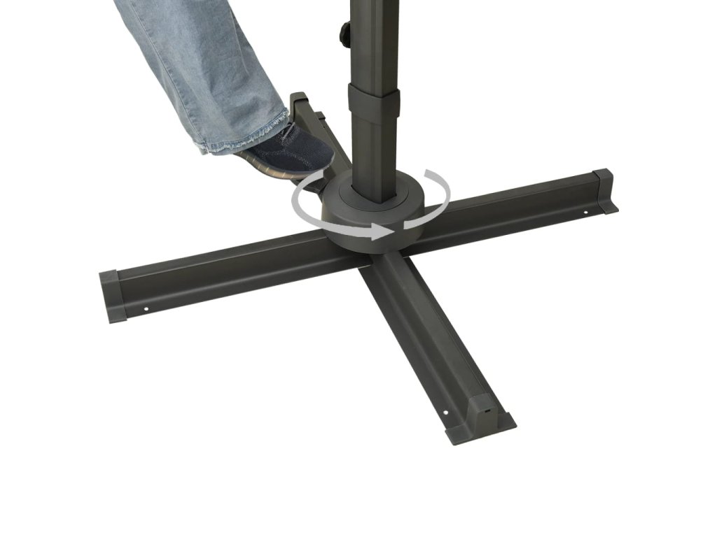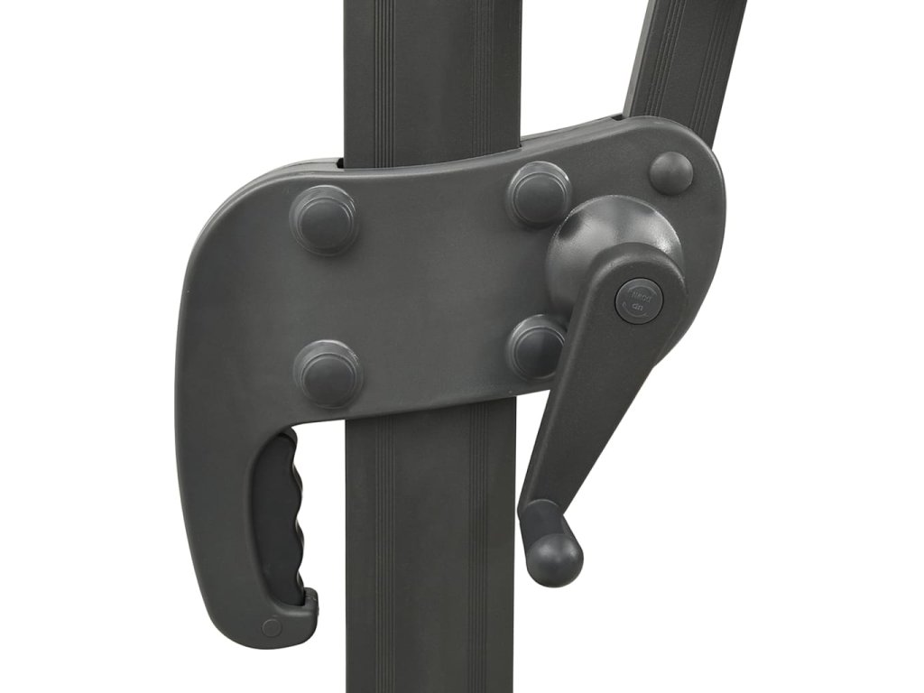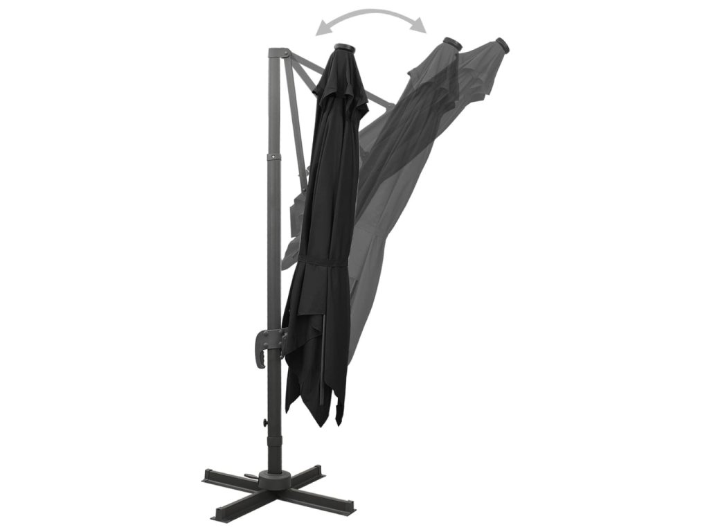 Potah slunečníku je vyrobený z neblednoucího polyesteru chránícího před UV zářením a poskytuje vám optimální ochranu před sluncem a snadno se čistí. Slunečník je vybaven pevnou křížovou základnou, která zaručuje lepší stabilitu. Exkluzivní konstrukce vám umožní zahradní slunečník naklánět a otáčet o 360 stupňů, aby blokoval slunce v jakémkoli úhlu. Silná hliníková tyč s 8 žebry slunečníku zajišťuje stabilitu a dlouhou životnost. Náš zahradní slunečník disponuje klikovým mechanismem, což znamená, že se snadno otevírá i zavírá. Terasový slunečník rovněž disponuje 24 LED světly, která po západu slunce osvětlí váš venkovní prostor a vytvoří romantickou atmosféru.