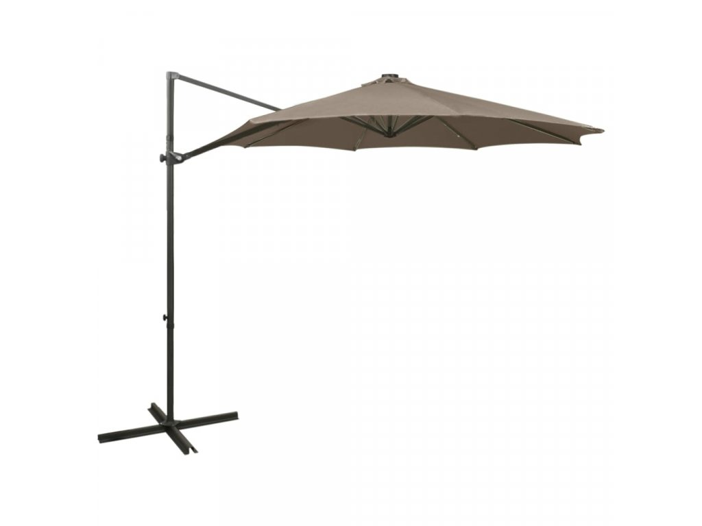 Marketos Boční zahradní slunečník s tyčí a LED světly taupe 300 cm