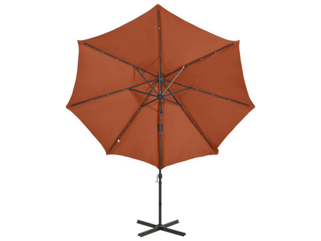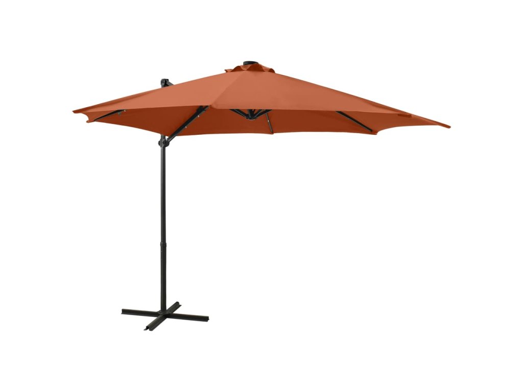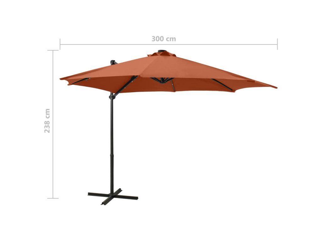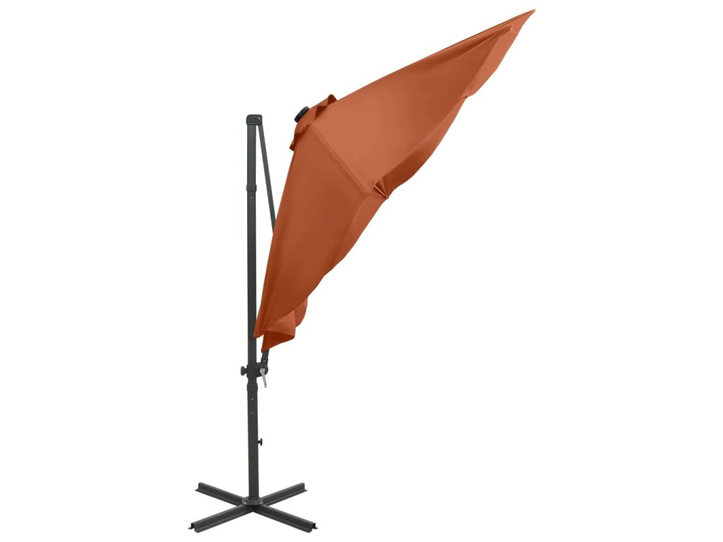 Marketos Boční zahradní slunečník s tyčí a LED světly terakotový 300 cm