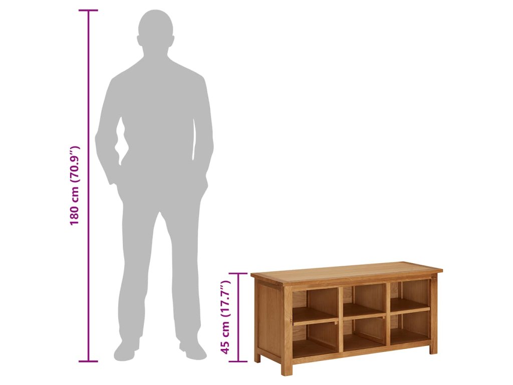 Tento funkční regál má jednoduchý design, který snadno sladíte s vaším interiérem. Je vyrobený z masivního dubového dřeva a MDF, je odolný, stabilní a snadno se čistí. Botník s 6 přihrádkami pojme mnoho párů bot.