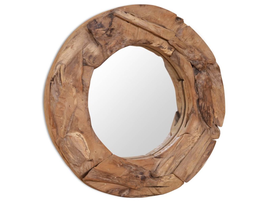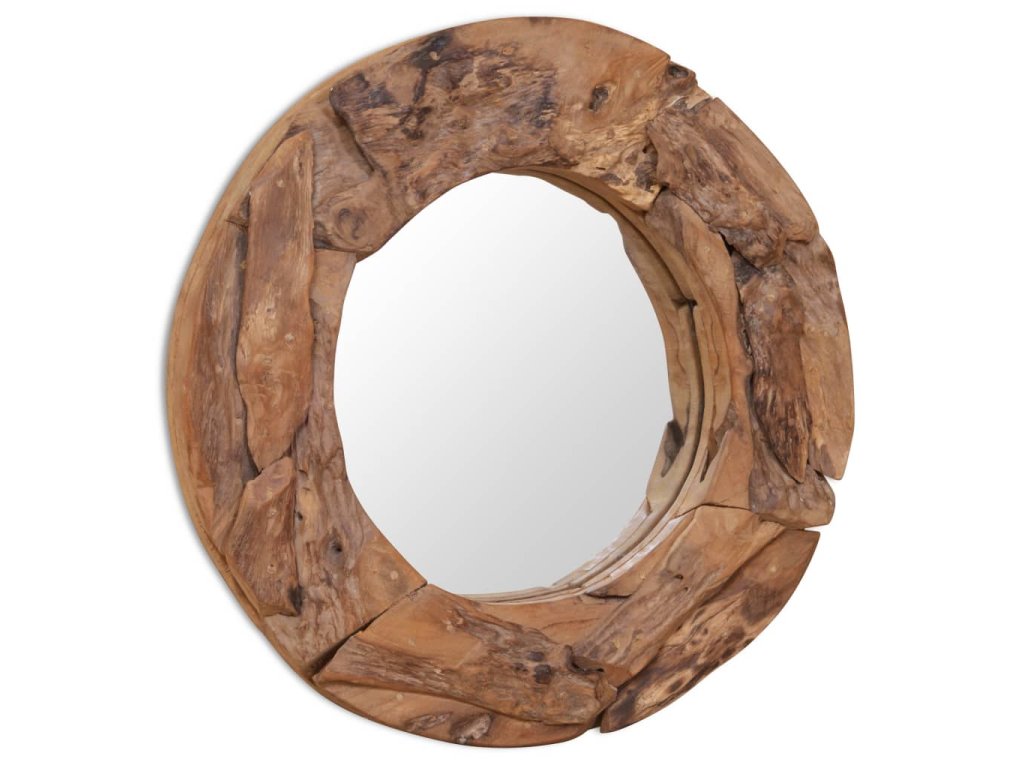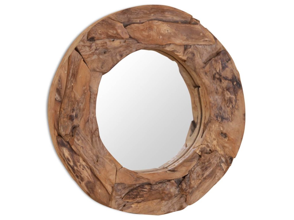 Rám zrcadla je vyroben z kousků teaku, které jsou náhodně uspořádané do nepravidelného tvaru. Řemeslné zpracování jen podtrhuje venkovské vzezření zrcadla. Zrcadlo lze umístit do každé místnosti; mimo to skvěle vynikne třeba i v koupelně.