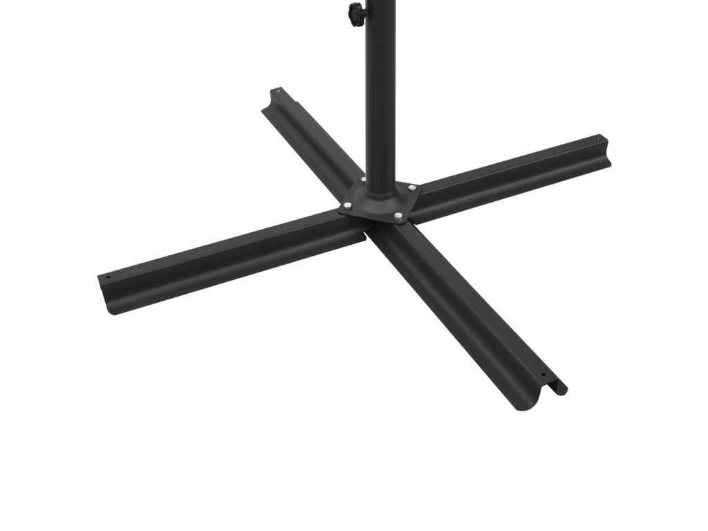 Tento slunečník je vyrobený z polyesteru, který vám poskytuje optimální ochranu před spálením od sluníčka. Robustní ocelová tyč spolu s tuhými ocelovými žebry udržuje slunečník stabilní. Slunečník je vybaven ocelovou křížovou základnou pro větší stabilitu. Konstrukce dvou vedle sebe umístěných stříšek je praktická, elegantní a jedinečná. Nejenže vám poskytne více stínu, ale také upoutá pozornost v jakémkoli venkovním bydlení. Kromě toho se snadno otevírá a zavírá.