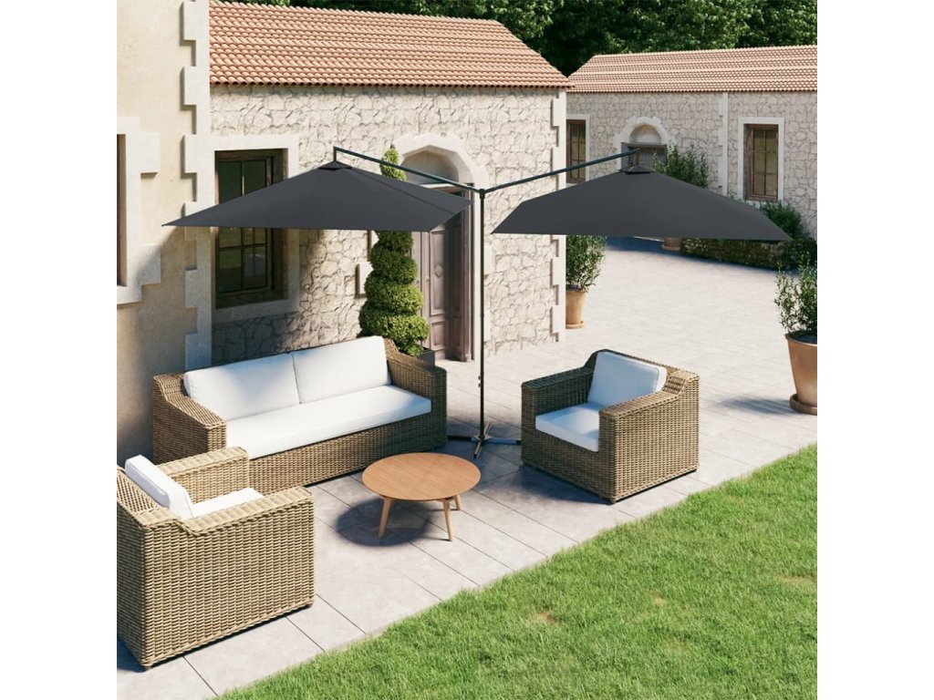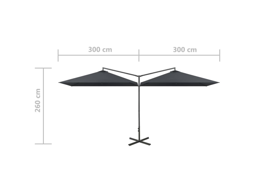 Marketos Dvojitý zahradní slunečník s ocelovou tyčí antracit 600x300 cm