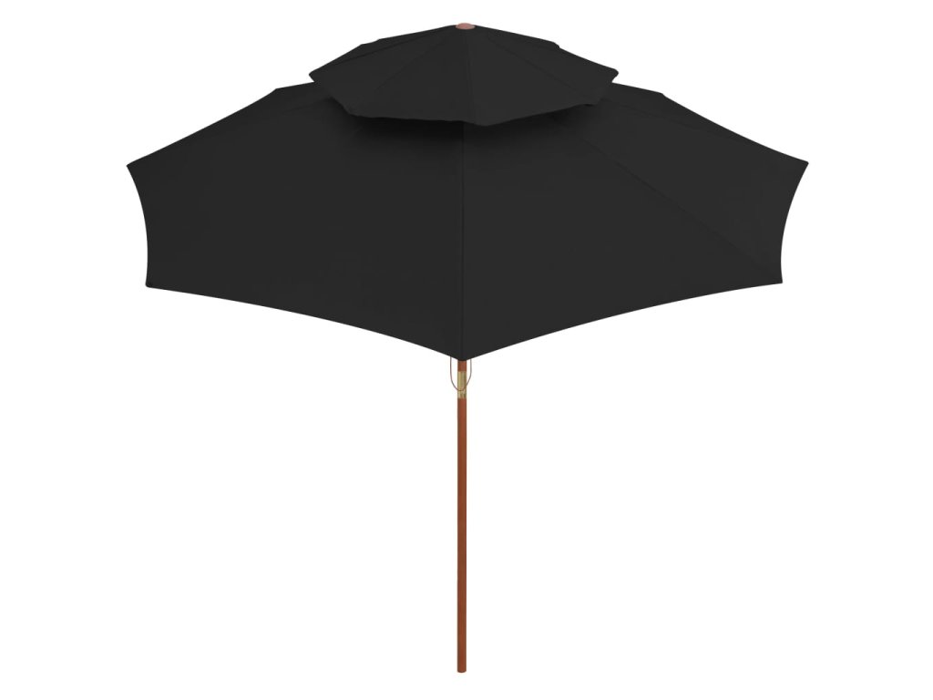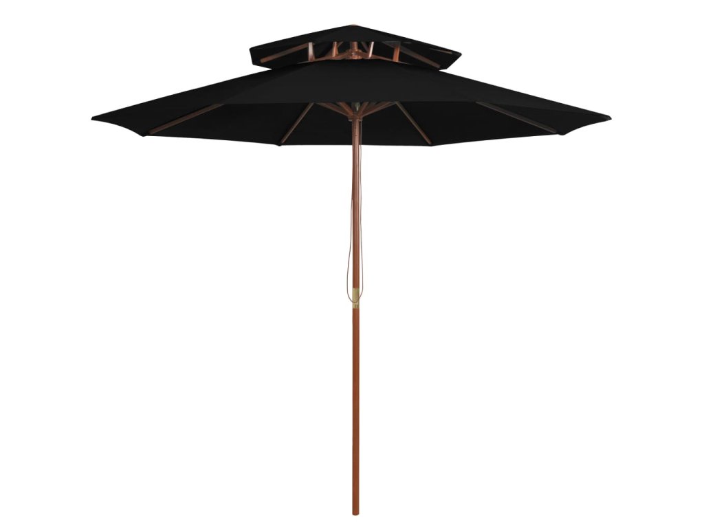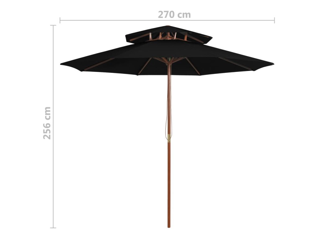 Marketos Dvoupatrový slunečník s dřevěnou tyčí černý 270 cm