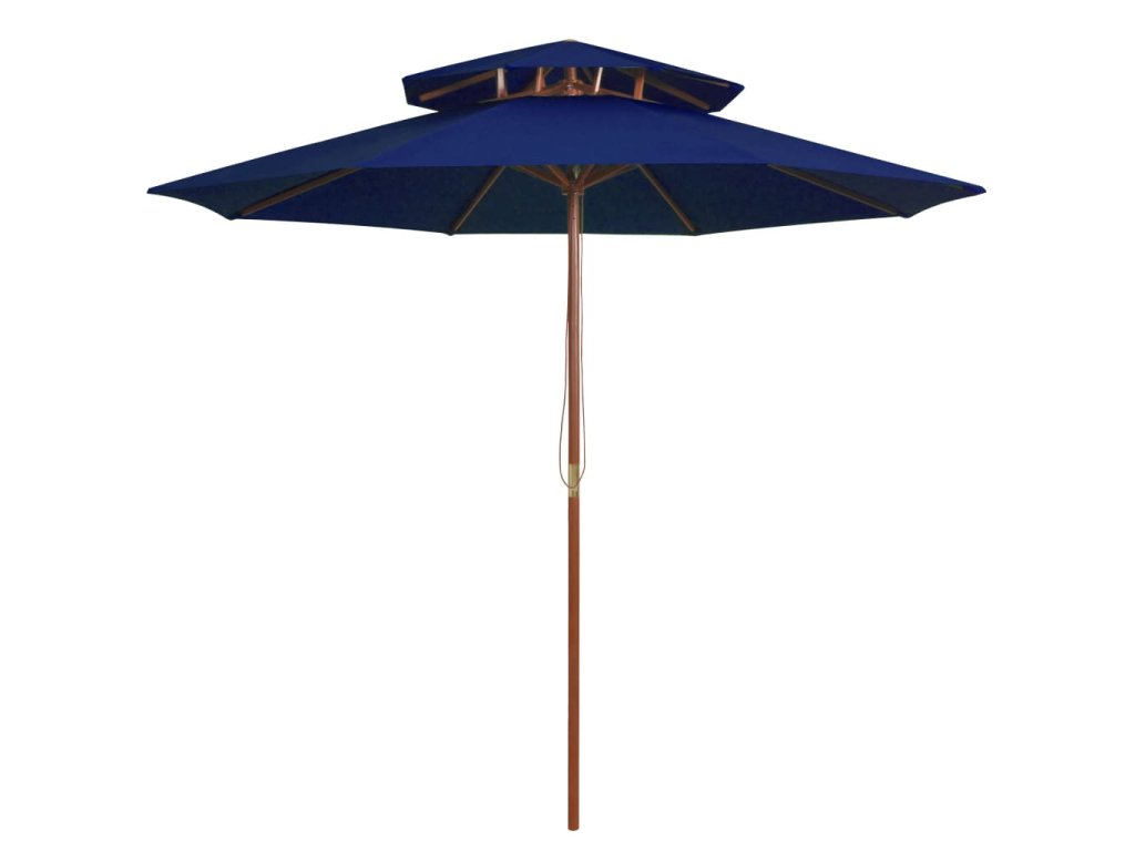 Marketos Dvoupatrový slunečník s dřevěnou tyčí modrý 270 cm