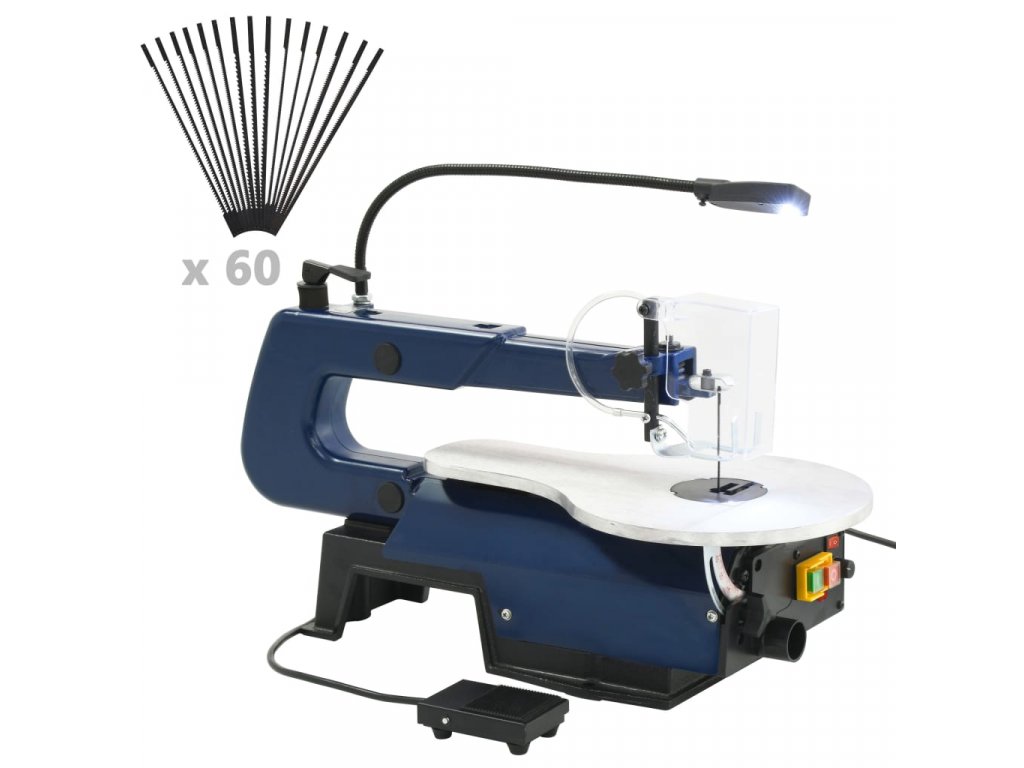 Rychlost lupínkové pily je proměnlivá v rozmezí od 550 do 1 600 ot./min, a to přispívá k účinnosti stroje a umožňuje vám snadno prořezávat tvrdé dřevo, plast nebo kov. Pila je vybavena nožním pedálovým spínačem, takže můžete obrobek přidržovat neustále oběma rukama. Pracovní stůl je vyroben z odolného hliníku a lze jej sklonit směrem dolů pod úhlem 0 až 45° pro větší přesnost a preciznost práce.