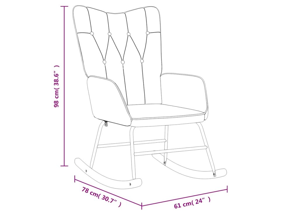 Toto relaxační křeslo se 7 knoflíky a liniemi působí velmi esteticky. Navíc je polstrované pěnovým molitanem a čalouněné na dotek měkkou látkou, takže vám při sezení zajistí optimální pohodlí. Vzhledem k dlouhým houpacím kolejnicím se křeslo jen tak nepřevrhne. Navíc je podepřeno ocelovým rámem a nohami, spolu s dřevěnými houpacími kolejnicemi, takže je velmi stabilní a vyniká svou dlouhou životností.