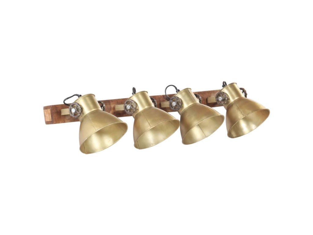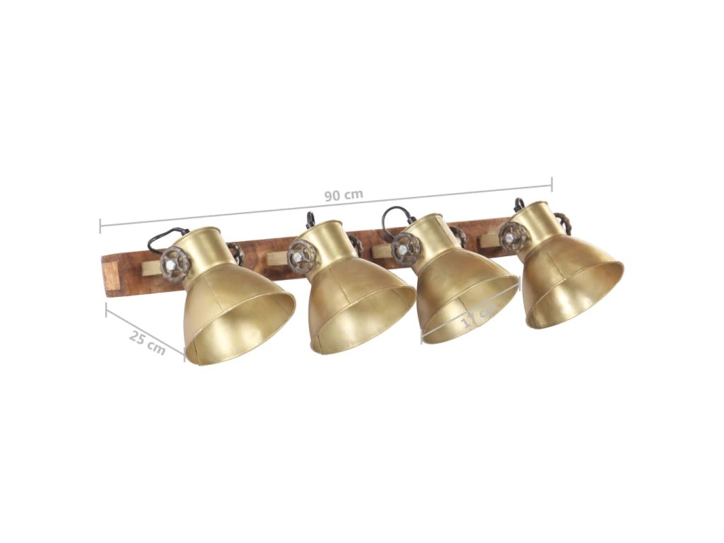 Železná stínidla s mosazným patinovaným povrchem doplňuje starovenkovský hnědý odstín masivního mangovníkového dřeva, takže skvěle zapadnou do každého venkovského či industriálního interiéru. Stropní světlo má 4 stínidla, do kterých je třeba namontovat žárovky s paticí E27 o maximálním výkonu 25 wattů. K instalaci si můžete vybírat ze žárovek E27 různých barev, abyste si doma navodili ideální atmosféru klidu a pohody.