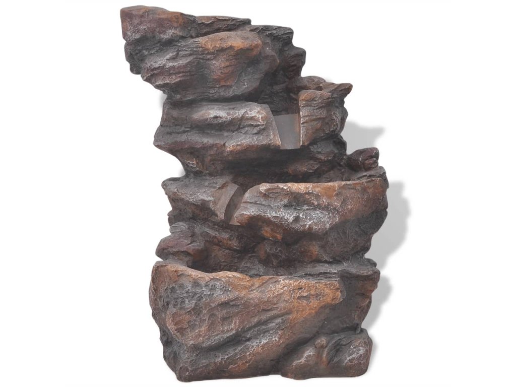Tento prvek s tekoucí vodou se bude hodit do každého stylu zařízení. Má čtyřúrovňovou vodní kaskádu a je osvětlen LED diodami, což vytváří úchvatný vizuální efekt, obzvláště v noci. Tato fontána je vyrobena z polyresinu (syntetická pryskyřice) a je odolná vůči UV záření, což znamená, že bude vypadat stále dobře a uchovávat si svou barvu, i když ji umístíte na přímé sluneční světlo. Několik pramínků a uklidňující zvuk tekoucí vody navozuje relaxační a meditativní atmosféru. Přiložené vysoce kvalitní čerpadlo zajišťuje bezpečné a spolehlivé používání.
