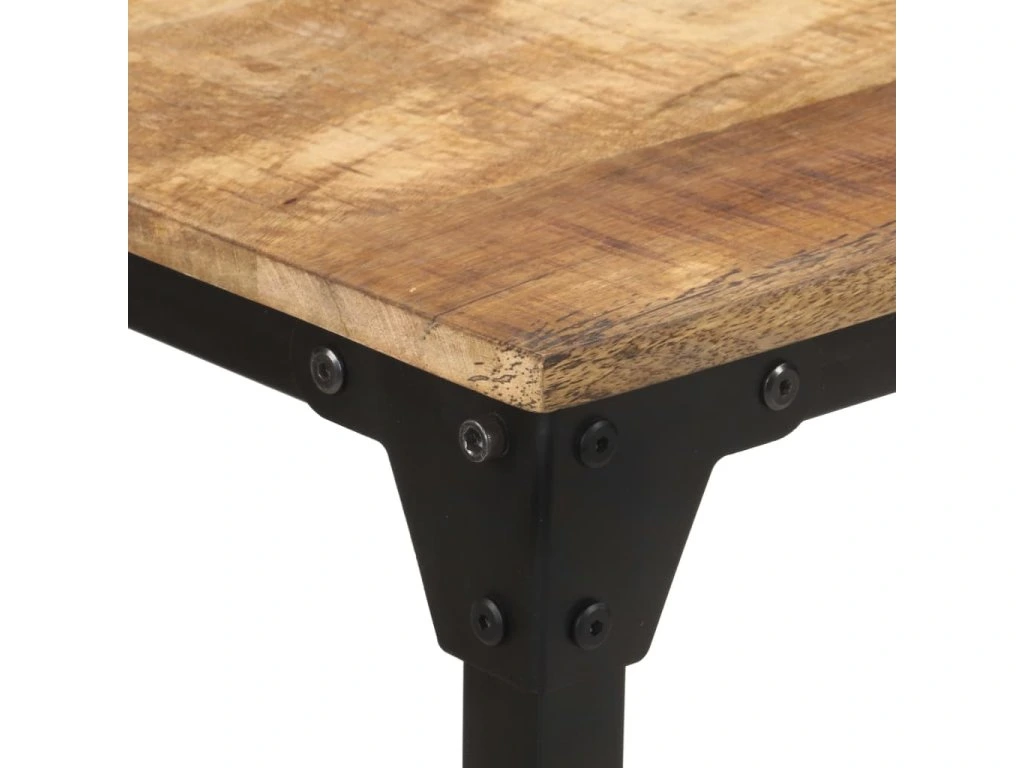 Kuchyňský stůl je ručně vyrobený z hrubého mangovníku, tropického tvrdého dřeva s velkou nosností. Skvěle také odolává opotřebení a působení času, takže je stabilní a dlouho vydrží. Jídelní stůl má práškově lakované železné nohy, takže je vysoce stabilní a odolný. Dřevěná stolní deska je perfektní pro odkládání nápoje, svačinu nebo vystavení dekorací.