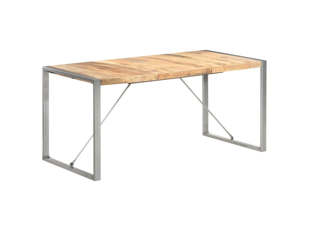 Tento jídelní stůl je vyrobený z masivního hrubého mangovníku, tropického tvrdého dřeva se schopností nést velkou váhu. Toto dřevo také výborně odolává zubu času a opotřebení, a proto je nábytek z mangovníkového dřeva stabilní a odolný. Ocelové nohy stolku jsou ošetřené práškovým nástřikem a poskytují extra stabilitu.