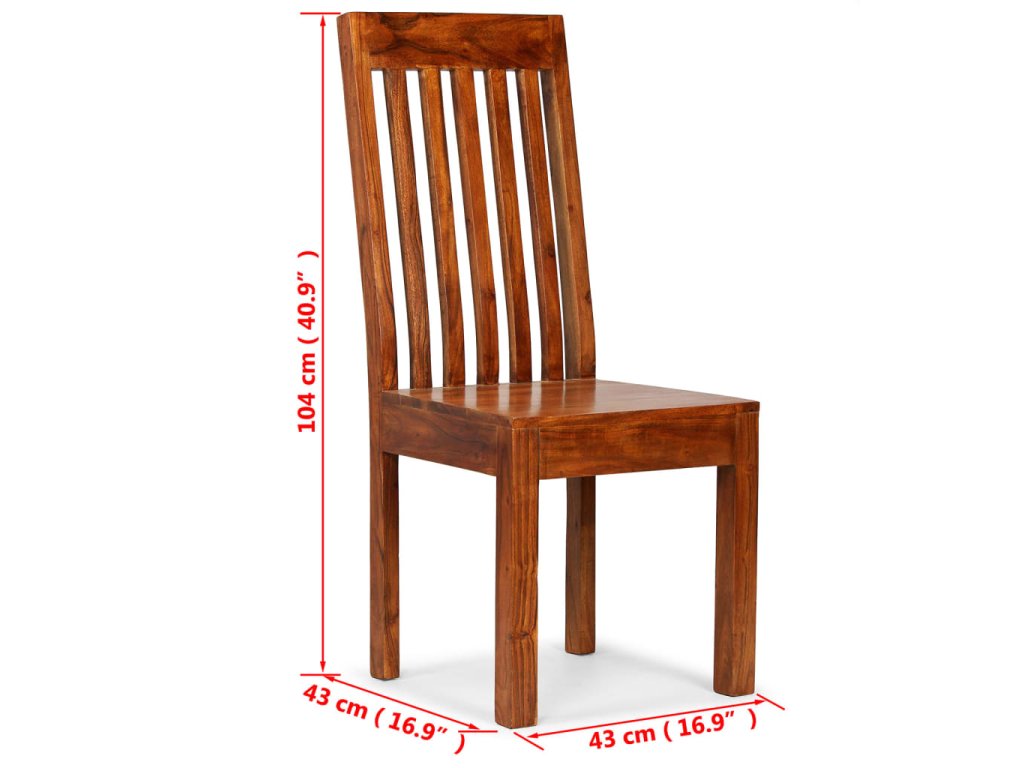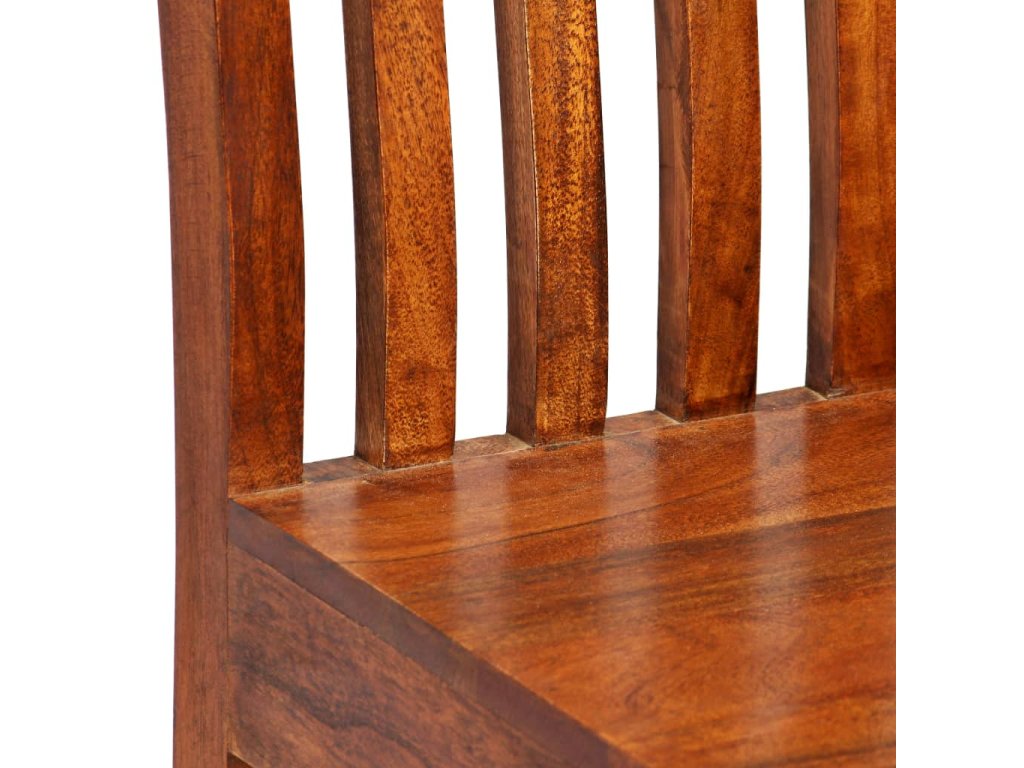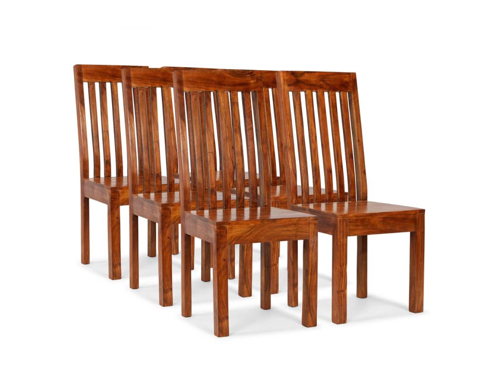 Židle jsou vyrobeny z masivního akáciového dřeva. Akácie je odolné tropické tvrdé dřevo. Tyto židle jsou celé ručně vyráběné a krásná kresba dřeva propůjčuje každému kusu nábytku jeho jedinečný a od všech ostatních lehce odlišný vzhled. Jídelní židle se snadno čistí vlhkým hadříkem. Snadno se sestavuje.