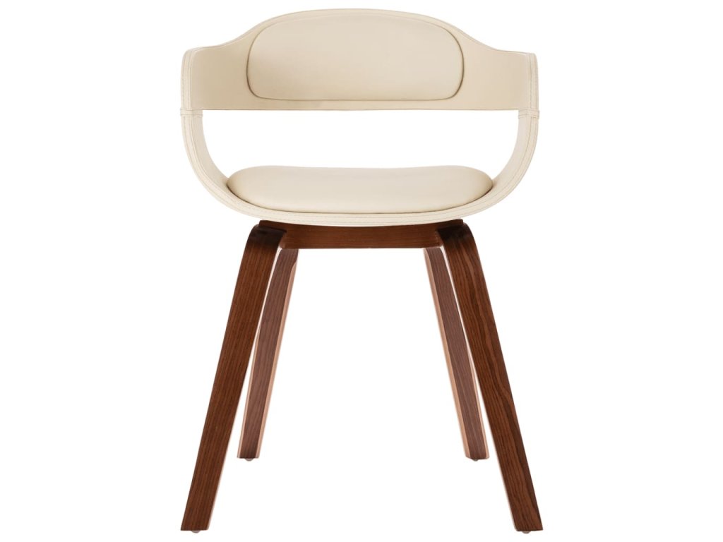 Jídelní židle je čalouněná umělou kůží, měkká k sezení a snadno se čistí. Díky polstrovanému sedáku a opěradlu poskytuje maximální komfort při sezení. Vysoce kvalitní rám a nohy z ohýbaného dřeva propůjčují židli robustnost a odolnost a dodávají jí stylový vzhled.