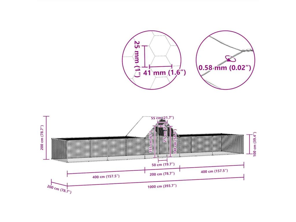 Marketos Klec pro kuřata 10 x 2 x 2 m pozinkovaná ocel