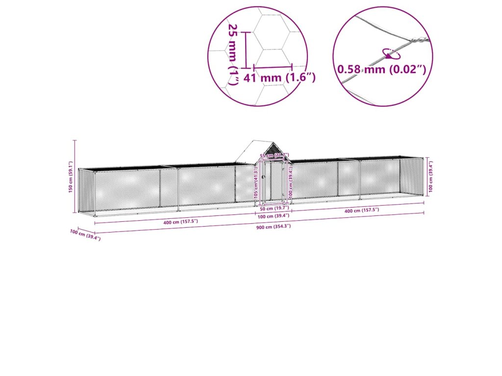 Marketos Klec pro kuřata 9 x 1 x 1,5 m pozinkovaná ocel