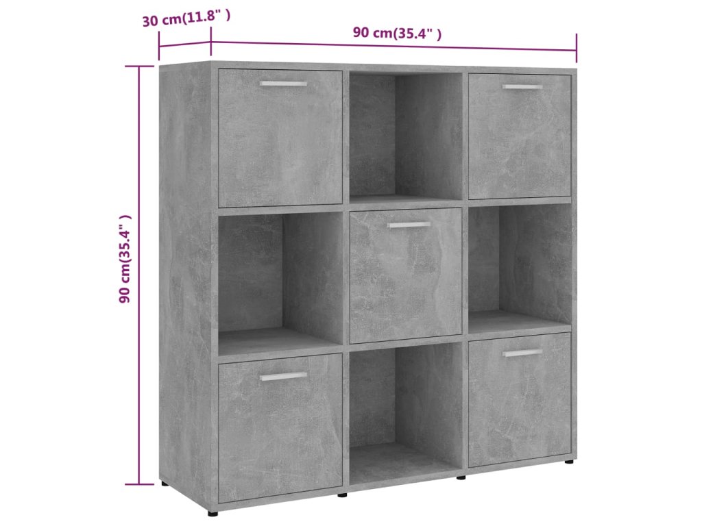 Marketos Knihovna betonově šedá 90 x 30 x 90 cm kompozitní dřevo