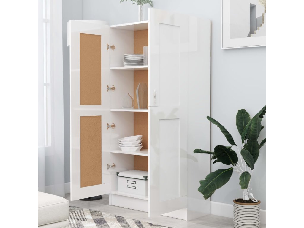 Skříň je vyrobená z kvalitního kompozitního dřeva, je proto odolná a má dlouhou životnost. Čtyři velké prostorné přihrádky za 2 dvířky nabízí spoustu místa pro přehledné ukládání časopisů, knih, DVD a multimediálních zařízení tak, abyste je měli neustále po ruce. Rovněž si v nich můžete vystavit i nejrůznější dekorativní předměty. Police na knihy mají všestranný charakter, poslouží vám tedy jako dokonalé úložné řešení v různých místnostech. Knihovnu navíc snadno očistíte vlhkým hadříkem.