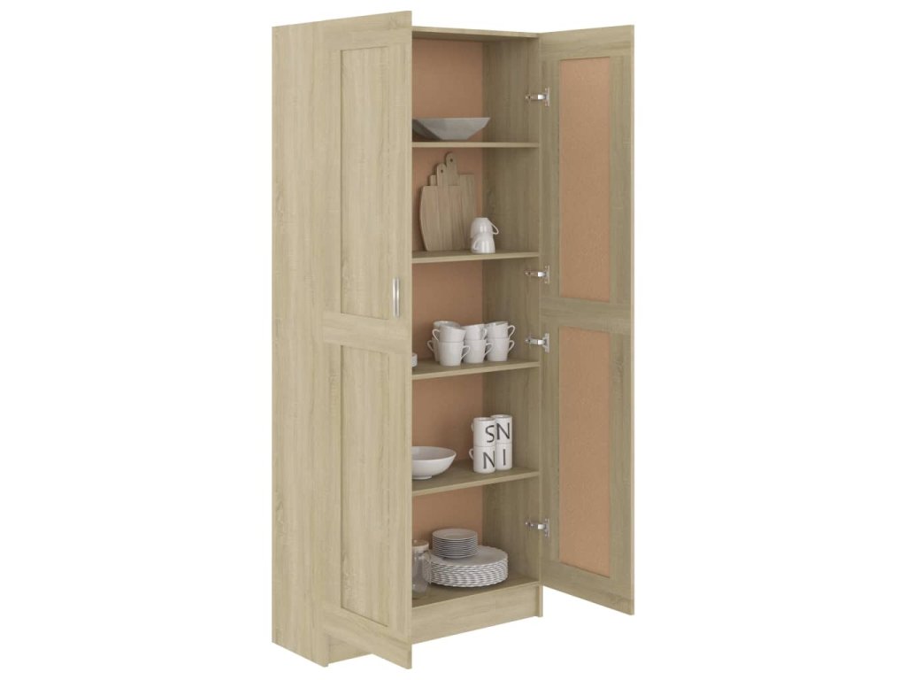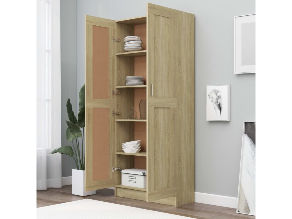 Skříň je vyrobená z kvalitního kompozitního dřeva, je proto odolná a má dlouhou životnost. Pět velkých prostorných přihrádek za 2 dvířky nabízí spoustu místa pro přehledné ukládání časopisů, knih, DVD a multimediálních zařízení tak, abyste je měli neustále po ruce. Rovněž si v nich můžete vystavit i nejrůznější dekorativní předměty. Police na knihy mají všestranný charakter, poslouží vám tedy jako dokonalé úložné řešení v různých místnostech. Knihovnu navíc snadno očistíte vlhkým hadříkem.