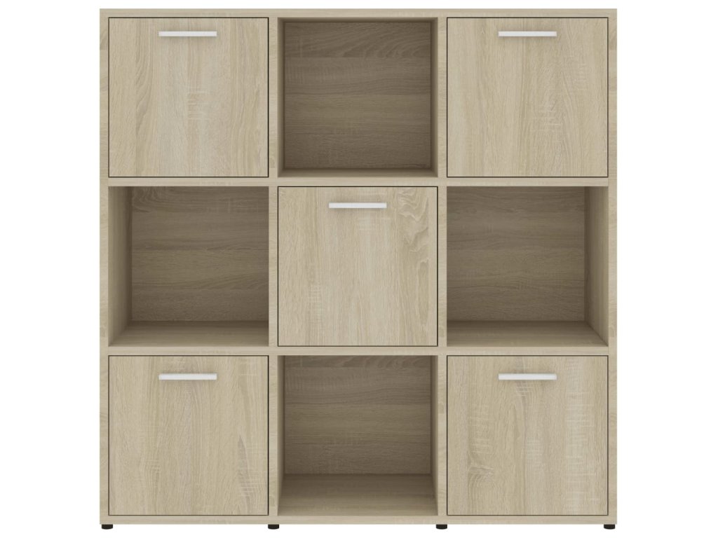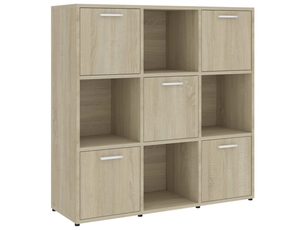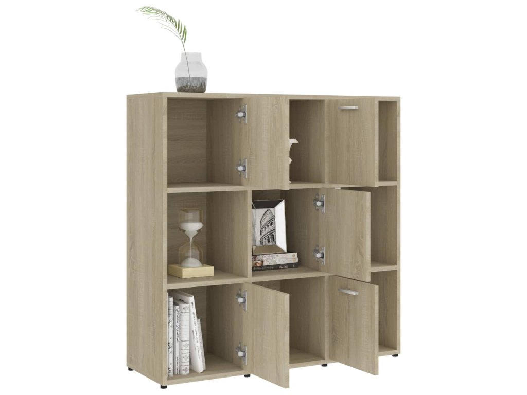Knihovna je vyrobená z kvalitního kompozitního dřeva, je tudíž robustní, odolná a má dlouhou životnost. Devět velkých přihrádek, z nichž 5 má dvířka, vám poskytne spoustu místa pro přehledné ukládání časopisů, knih, DVD a multimediálních zařízení, které chcete mít po ruce, stejně jako i pro vystavení různých dekorativních předmětů. Police na knihy se snadno čistí vlhkým hadříkem.