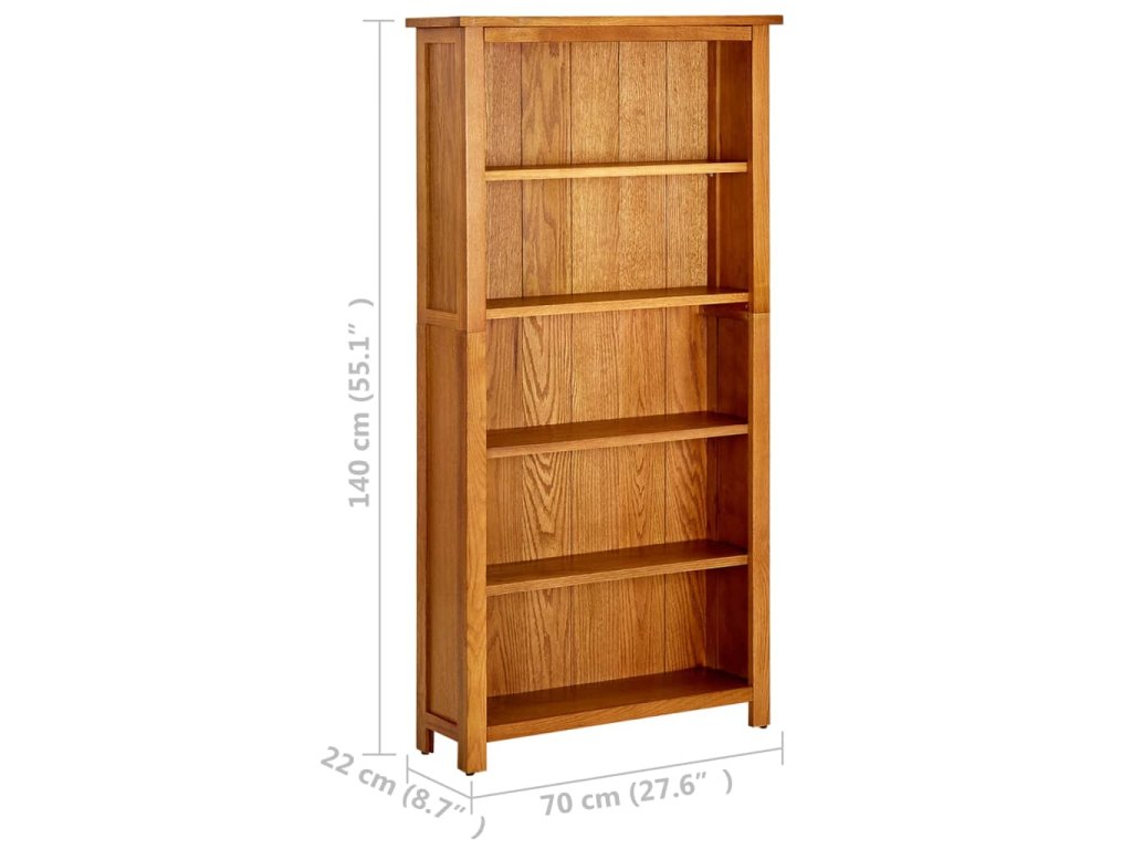 Marketos Knihovna s 5 policemi 70 x 22 x 140 cm masivní dubové dřevo
