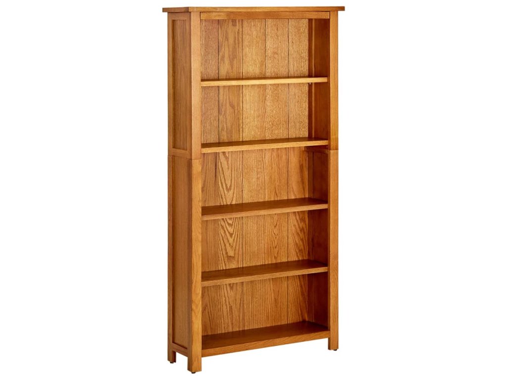 Tato elegantní knihovna je vyrobená z masivního dubového dřeva, takže je odolná a pevná. Robustní dřevěná knihovna vyžaduje jen minimální údržbu a krásná textura dřeva jí dodává rustikální kouzlo. Police nabízí dostatek prostoru k přehlednému uložení sbírek knih, časopisů a dokumentů. Tuto knihovnu v jednoduchém, avšak nadčasovém designu, můžete využít také k vystavení dekorativních předmětů, fotorámečků atd.