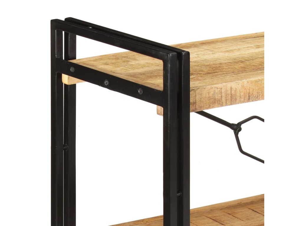 - Materiál: masivní hrubé mangovníkové dřevo s přírodním povrchem, práškově lakovaná ocel