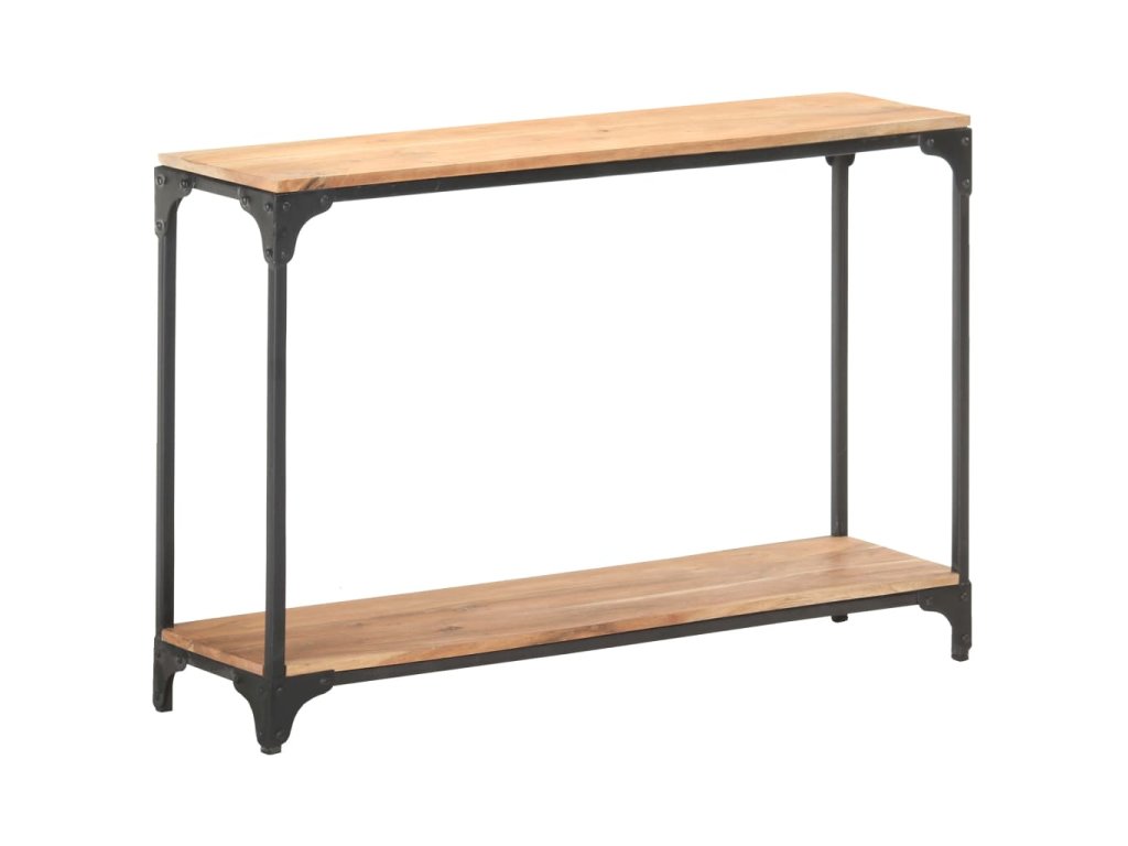 Tento stolek do předsíně je vyrobený z masivní akácie, tvrdého dřeva s hustou strukturou. Tento krásně navržený stolek je stabilní, odolný a atraktivní. Každý kus se od všech ostatních mírně odlišuje unikátním řemeslným zpracováním a krásnou kresbou dřeva. Černý ocelový rám s práškovým nástřikem propůjčuje je bytelný a stabilní. Pevná horní deska nabízí dostatek prostoru pro umístění ovocných košů, fotorámečků nebo jiných dekorativních předmětů. Spodní police je ideální pro přehledné uložení časopisů, knih a dalších drobností, které chcete mít po ruce.