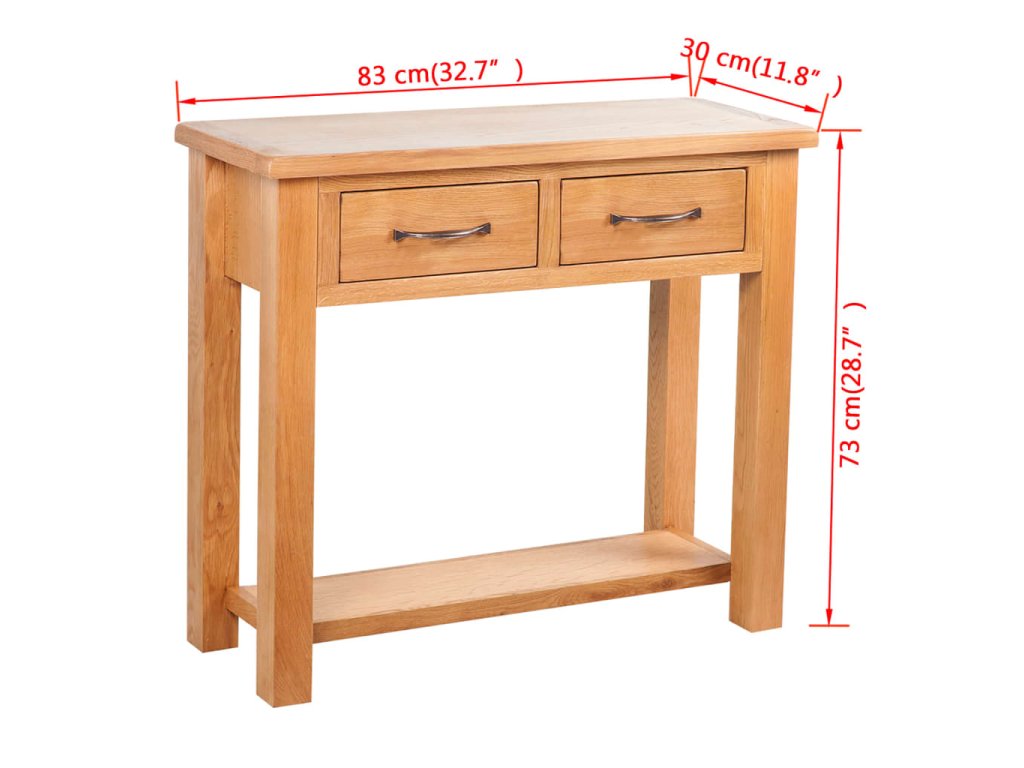 Tento stolek je zručně vyrobený z odolného dubového masivu a má velmi praktický design. Jeho dokonale kompaktní design zabírá jen velice málo místa, a stolek se proto hodí i do malých prostorů. Dvě zásuvky vám nabídnou prostor navíc na vaše drobnosti, kosmetiku a další drobné věci.