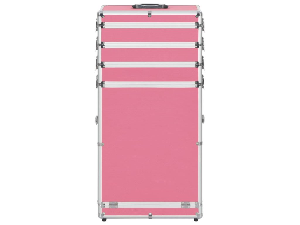 Tento kosmetický kufřík je vyrobený ze dřeva, ABS fólie a hliníku a snadno si do něj uložíte svou kosmetiku tak, aby cestovala v bezpečí. Tento kosmetický kufr má 4 části a 1 zásuvku. Najdete v něm dostatek úložného prostoru pro vaše kosmetické a kadeřnické výrobky. Je vybaven 4 odnímatelnými kolečky, takže jej můžete snadno převážet a vzít ho kamkoliv s sebou!