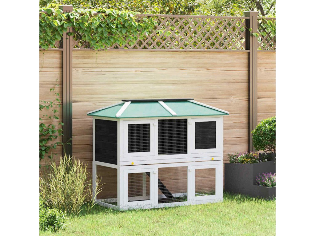 Tato vysoce kvalitní dvoupatrová králíkárna poskytne vašim roztomilým králíčkům a kuřatům útulné útočiště. Využijete ji k mnoha účelům: na hraní, pro zdravý pohyb a chov.