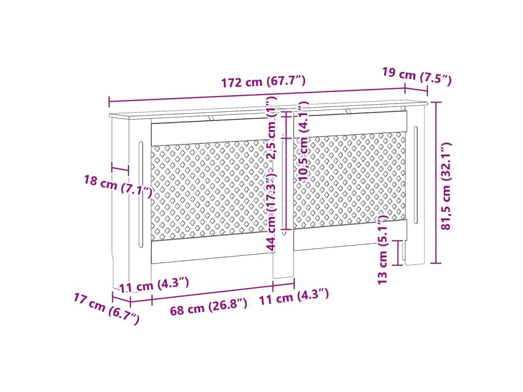 Tento kryt na radiátor představuje jak stylový, tak praktický doplněk do vašeho obývacího pokoje. Je navržen tak, aby dodal vašemu topení dekorativní charakter a zároveň vám poskytl více prostoru pro vaše zarámované fotografie, knihy, ozdoby apod.