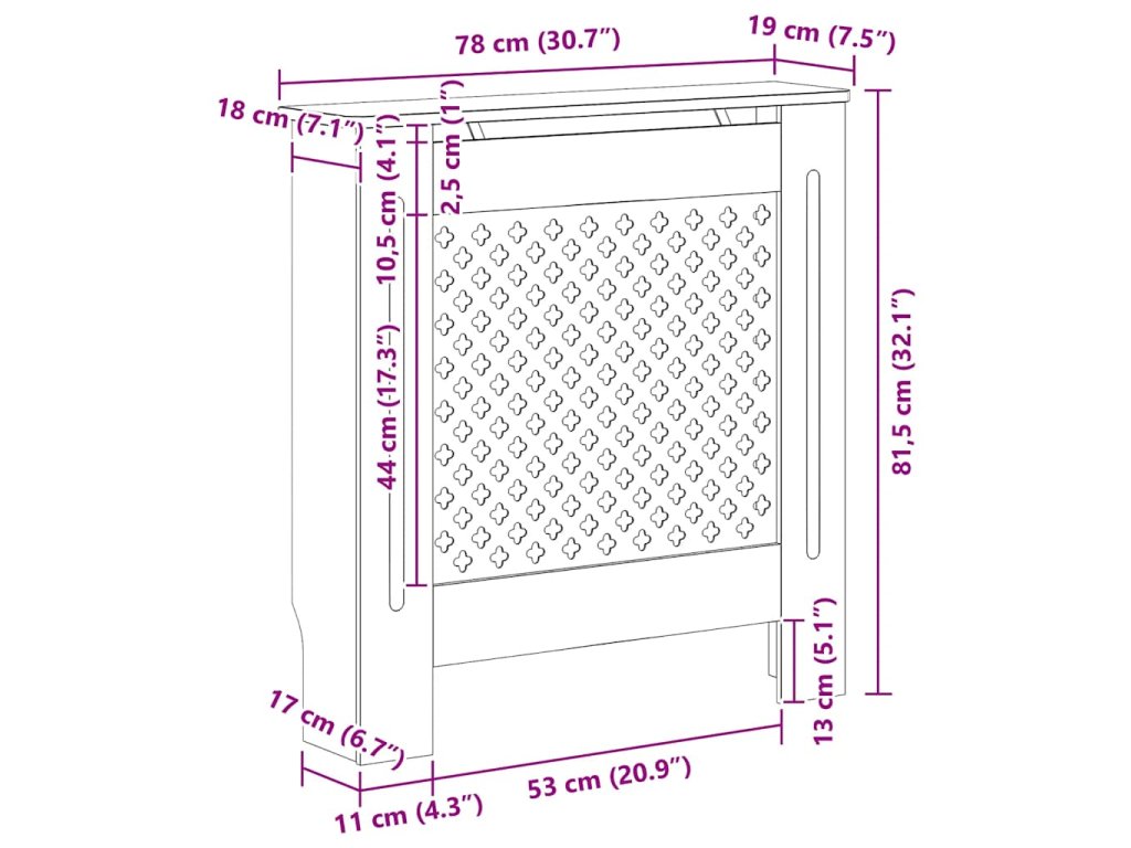 Kryt na radiátor je vyrobený z MDF, vyznačuje se tedy odolností a dlouhou životností. Upoutá pozornost moderním lamelovým designem, takže je vhodný pro jakýkoli dekor. Police vám poskytne dostatek místa pro umístění všech vašich knih, rámečků s fotografiemi, dekorací atd.Properties: