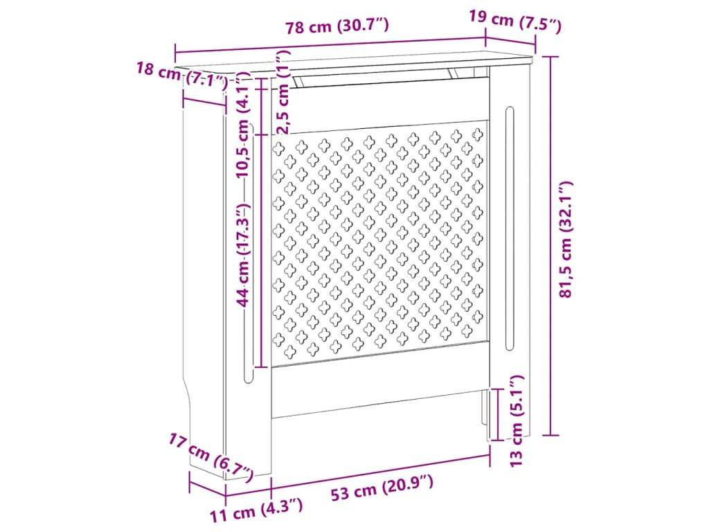 Kryt na radiátor je vyrobený z MDF, vyznačuje se tedy odolností a dlouhou životností. Upoutá pozornost moderním lamelovým designem, takže je vhodný pro jakýkoli dekor. Police vám poskytne dostatek místa pro umístění všech vašich knih, rámečků s fotografiemi, dekorací atd.Properties: