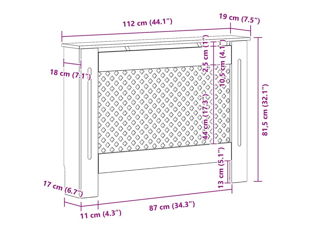 Tento kryt na radiátor představuje jak stylový, tak praktický doplněk do vašeho obývacího pokoje. Je navržen tak, aby dodal vašemu topení dekorativní charakter a zároveň vám poskytl více prostoru pro vaše zarámované fotografie, knihy, ozdoby apod.