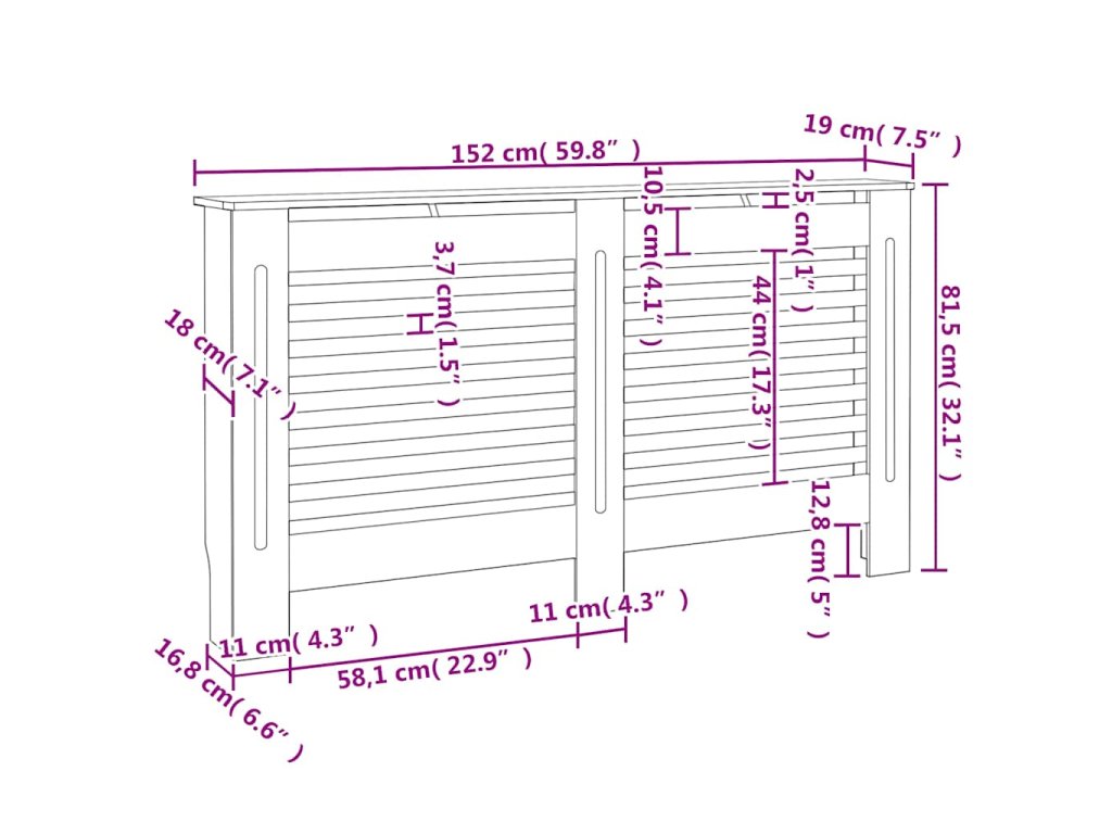 Tento kryt na radiátor představuje jak stylový, tak praktický doplněk do vašeho obývacího pokoje. Je navržen tak, aby dodal vašemu topení dekorativní charakter a zároveň vám poskytl více prostoru pro vaše zarámované fotografie, knihy, ozdoby apod.