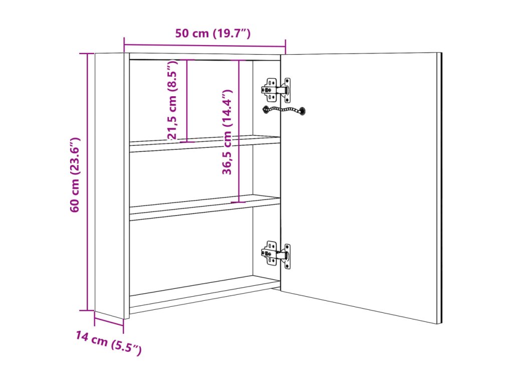 - Rozměry: 50 x 14 x 60 cm (Š x H x V)