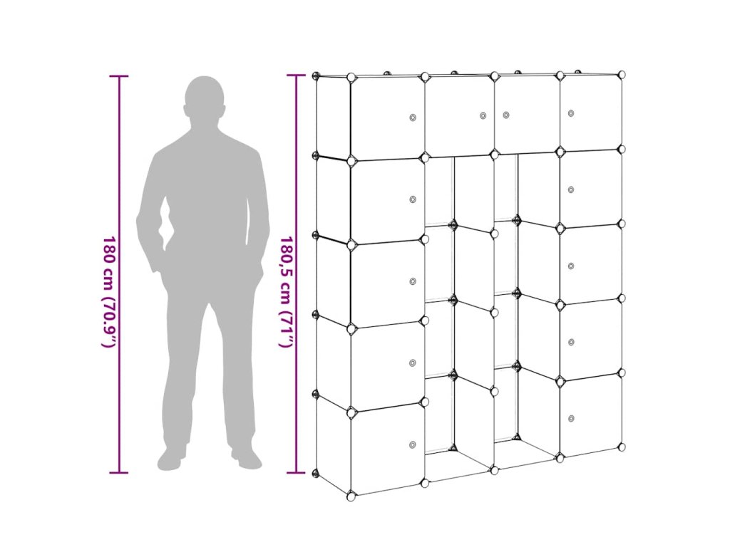 Šatník je vyroben z plastových elementů a chromovaného ocelového drátu, takže se snadno čistí. Vzhledem ke svému promyšlenému designu se skříň dá snadno a rychle složit v různém uspořádání, aby se přizpůsobila prostoru nebo vaší náladě.