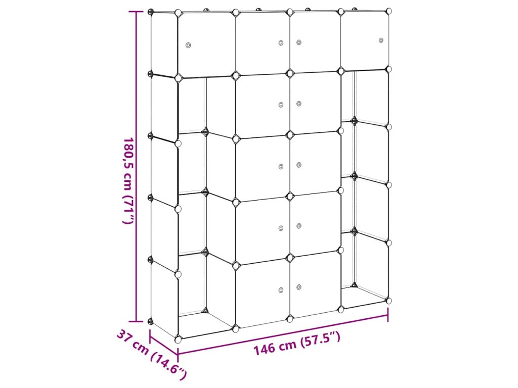 Tato praktická modulární skříň nejenže je velmi stylová, ale také vám umožní udržovat ve vašem oblečení a obuvi pořádek. Bude skvělým doplňkem do vašeho dětského pokojíčku, obývacího pokoje nebo ložnice.