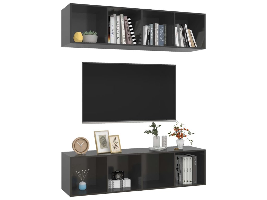 Marketos Nástěnné TV skříňky 2 ks šedé s vysokým leskem kompozitní dřevo