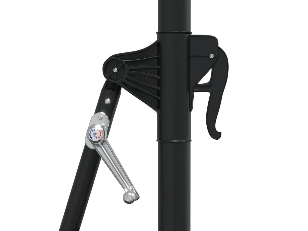 Stříška slunečníku je vyrobena z polyesterové tkaniny, která nepropouští škodlivé UV záření a nevybledne, a poskytne vám optimální ochranu před sluncem. Navíc se snadno čistí. Exkluzivní konstrukce tohoto slunečníku vám umožní naklonit ho tak, aby blokoval slunce, jak klesá za obzor. Silná kovová tyč s 8 odolnými žebry zajišťuje, že se slunečník nehýbe a hodně toho vydrží. Náš zahradní slunečník disponuje klikovým mechanismem, což znamená, že se snadno otevírá i zavírá. Sestavení výrobku je jednoduché. Balení obsahuje také montážní příslušenství.