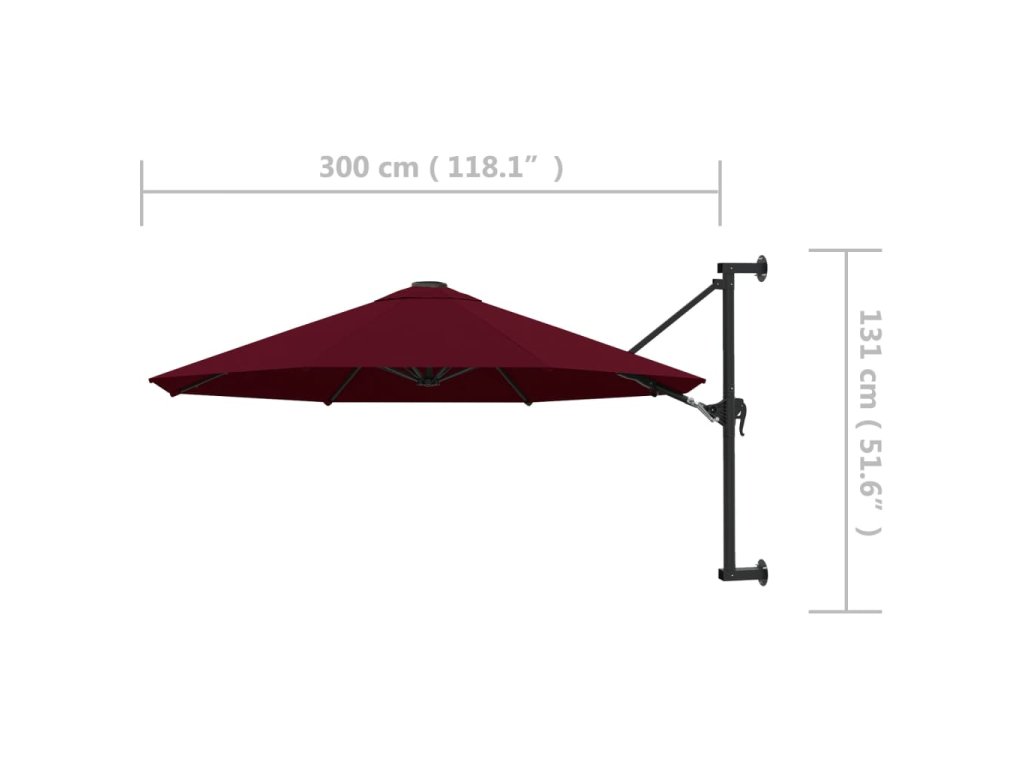 Marketos Nástěnný slunečník s kovovou tyčí 300 cm vínový
