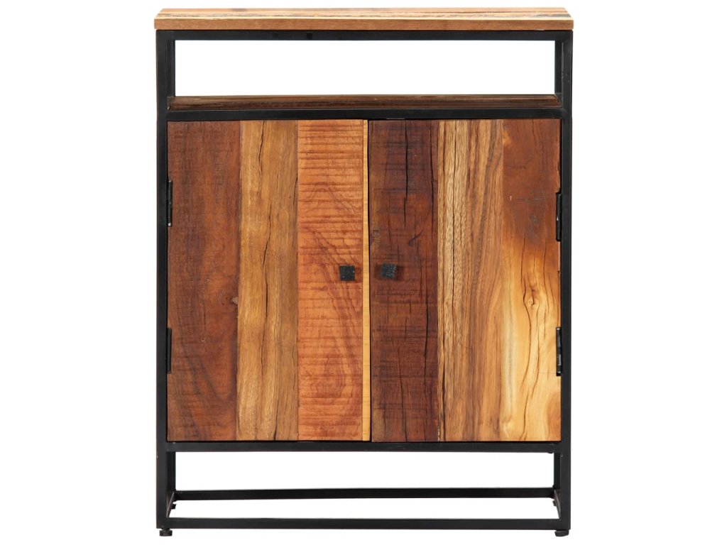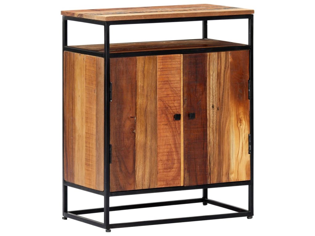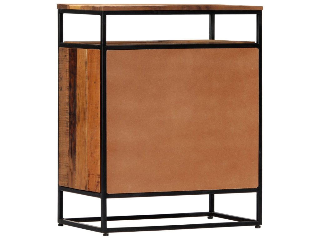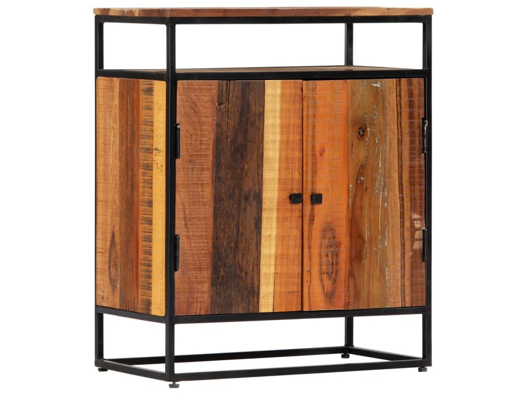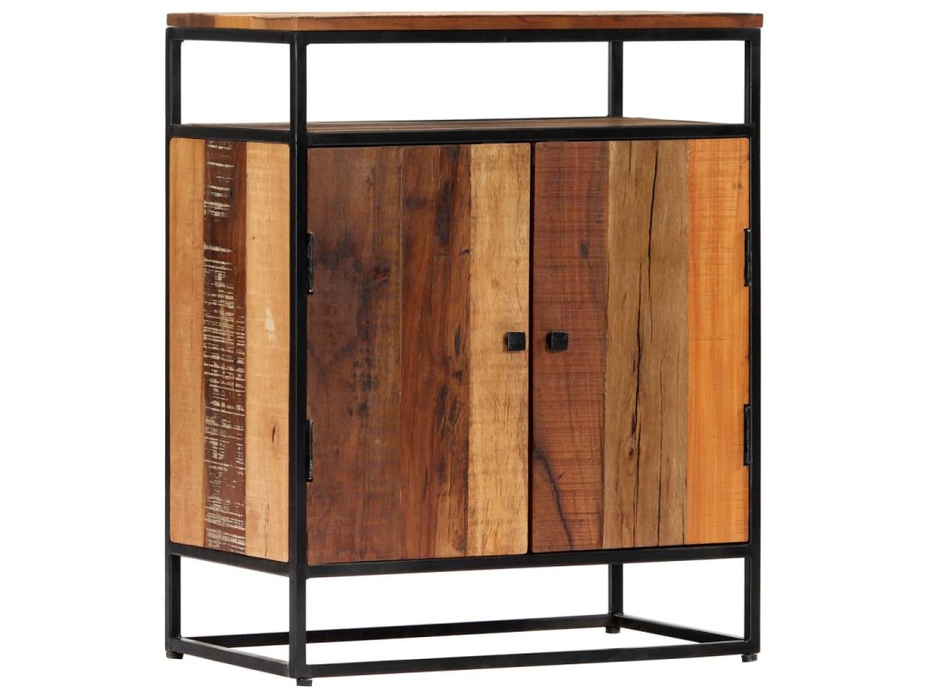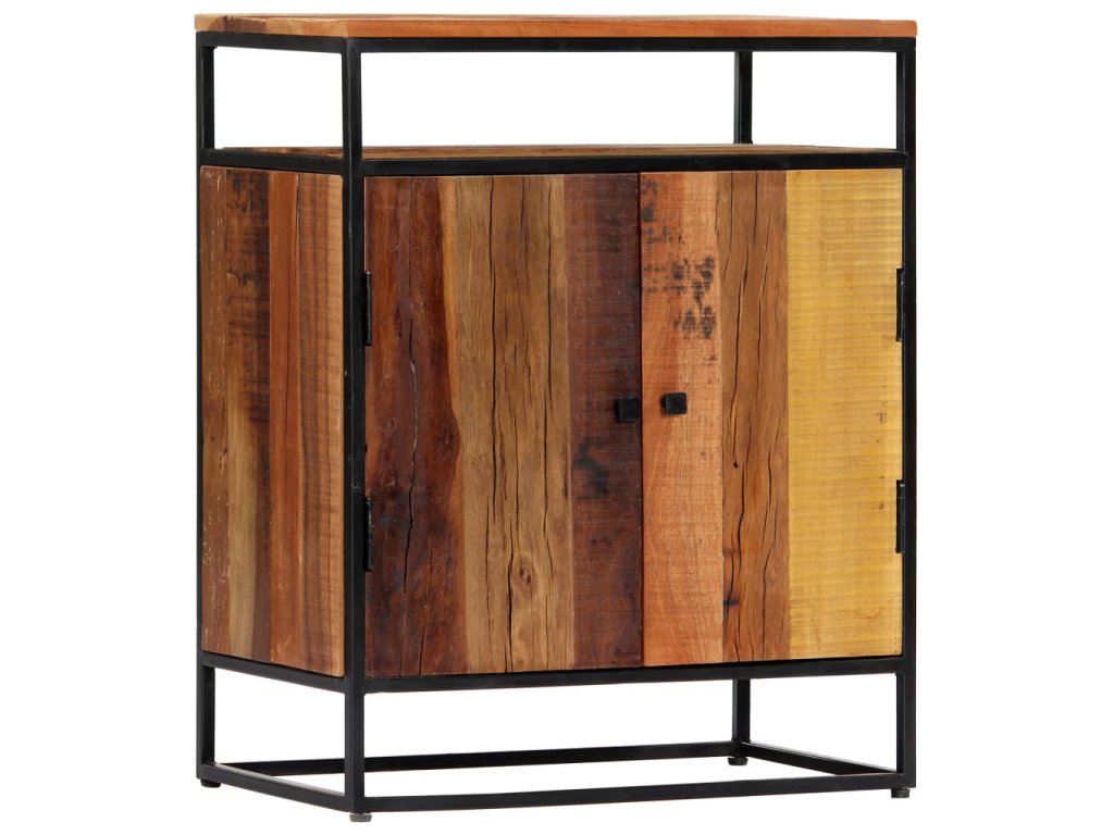 Tento příborník je vyrobený z masivního recyklovaného dřeva, které pochází z trámů, podlah a podpěrných nosníků ze starých budov určených k demolici. Sestává tedy z různých druhů dřeva, jako jsou borovice, teak, buk, dub, cedr, mangovník, akácie apod. Recyklované dřevo tak nabývá vlastností všech těchto rozličných typů dřevin. Navíc je již zestárlé, ošlehané a vyschlé, takže se nesmršťuje ani neohýbá. Každá fáze výrobního procesu se provádí s největší péčí, ať už se jedná o leštění, natírání nebo lakování. Zručné řemeslné zpracování a půvabná kresba dřeva propůjčují každému kusu nábytku jeho jedinečný a od všech ostatních lehce odlišný vzhled. Tato odkládací skříňka se pyšní 2 dvířky a 1 poličkou, představuje tedy ideální řešení pro přehledné uschování drobných předmětů na dosah ruky. Práškově lakovaný ocelový rám dodává skříňce na pevnosti a stabilitě. Odkládací skříňka se snadno sestavuje.