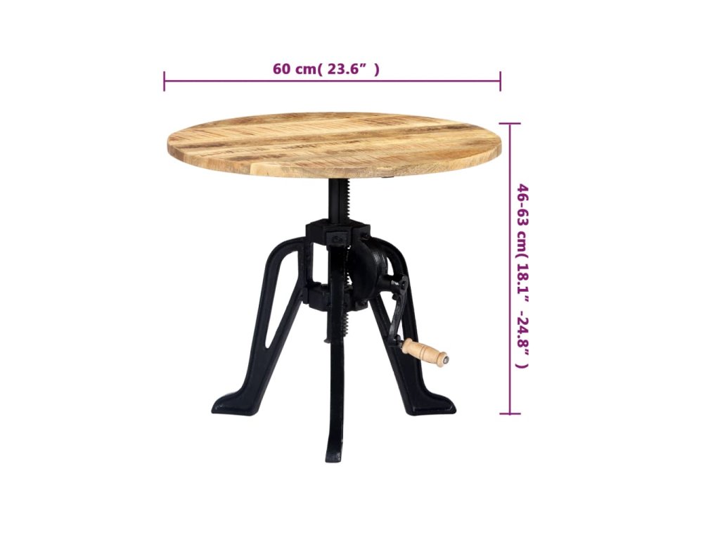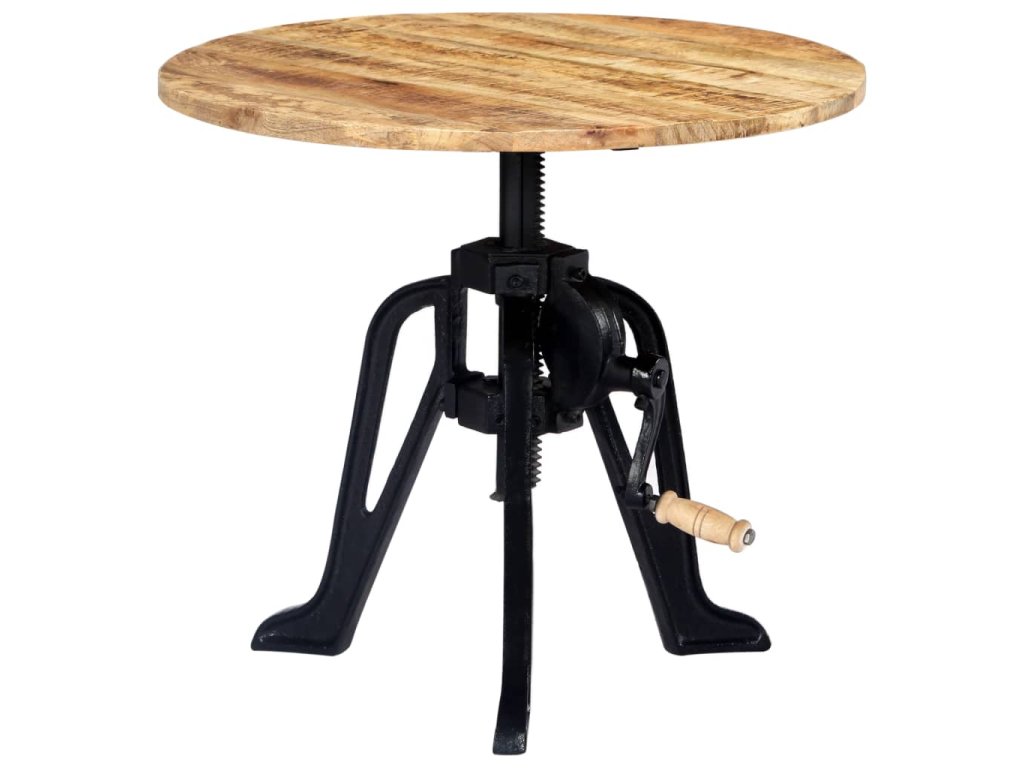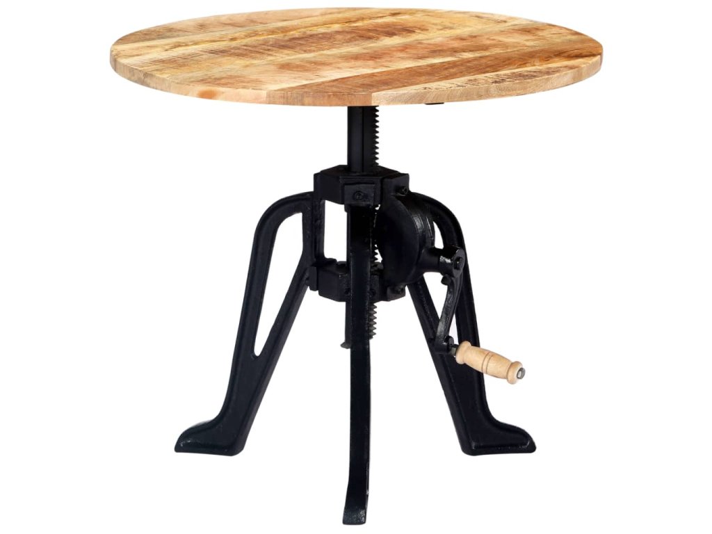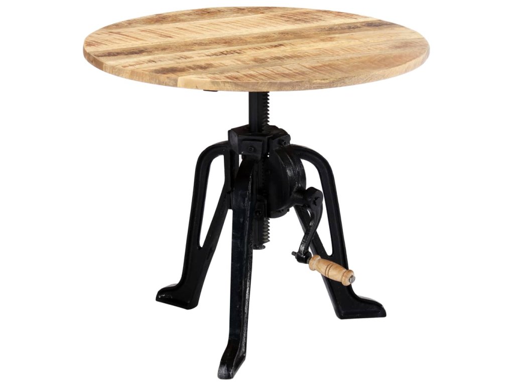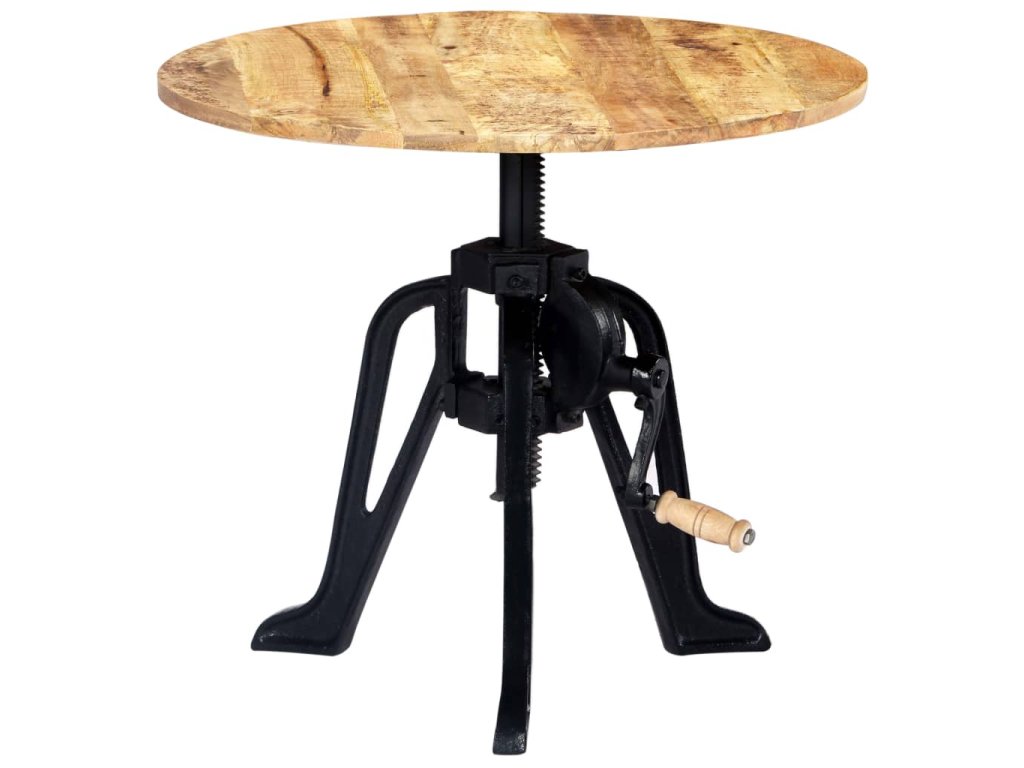 Odkládací stolek je vyroben z masivního mangovníkového dřeva, což zajišťuje jeho vysokou stabilitu a odolnost. Mangovník má husté a robustní tvrdé dřevo, jehož povrch se vyznačuje překrásnou hnědou či zlatou kresbou. Každý krok výrobního procesu je prováděn s mimořádnou péčí, ať už se jedná o leštění, natírání anebo lakování. Litinová základna dodává stolku na pevnosti a prodlužuje jeho životnost. Výšku dřevěného stolku lze nastavit v rozmezí 46 až 63 cm, takže ho můžete využívat k různým účelům.