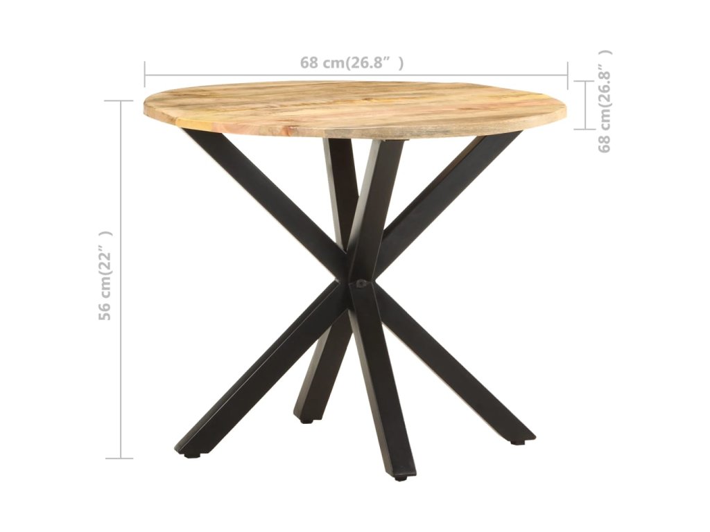 - Materiál: masivní mangovníkové dřevo s přírodním povrchem, práškově lakované železo