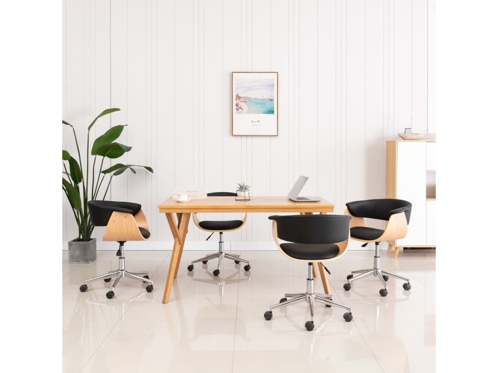 Židle jsou navíc velmi pohodlné, perfektní pro společné stolování v jídelním koutě a k odpočinku v obývacím pokoji. Sedák a opěradlo mají ergonomický tvar, jsou čalouněné měkkou umělou kůží a silně polstrované pěnovým molitanem, takže je židle mimořádně pohodlná. Dřevěný rám a kovové nohy přispívají k lepší odolnosti a zároveň působí velmi esteticky. Židle je otočná o 360 stupňů a je vybavena výškově nastavitelným mechanismem se systémem plynového zvedání.